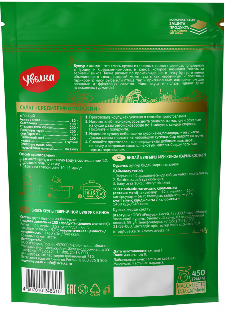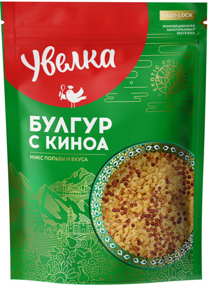 Увелка Смесь булгура с киноаВ данный момент этот товар отсутствует в продаже. Возможно, у нас найдется аналогичный или похожий товар здесь. Серия: Коллекция Булгур с киноа — это смесь крупы из твердых сортов пшеницы, популярной в Турции и Средиземноморье, и киноа, которое называют «золотыми зернами» инков. Такие разные по происхождению и вкусу булгур и киноа объединили в микс, который может стать как необычным и полезным гарниром к мясу, рыбе или птице, так и оригинальным ингредиентом для овощных и фруктовых салатов. Микс вкуса и пользы удивит даже изысканных гурманов! |