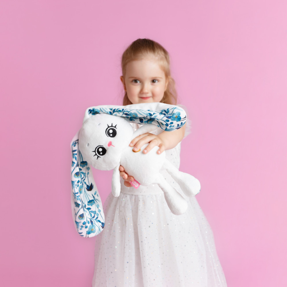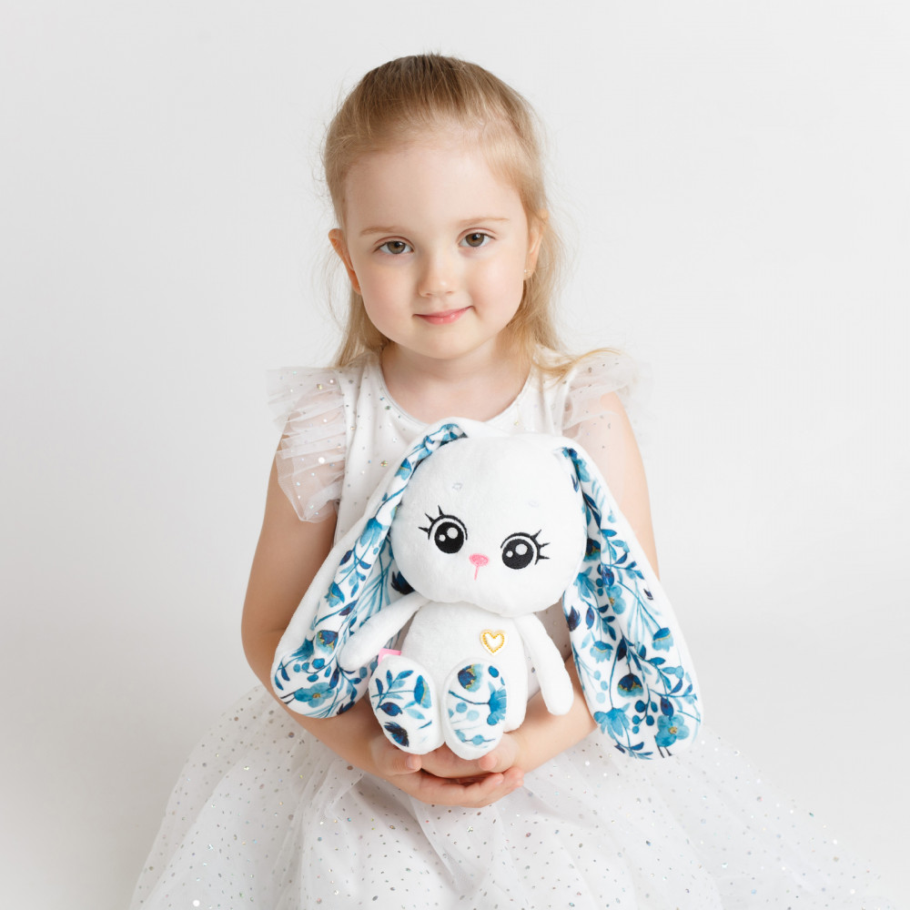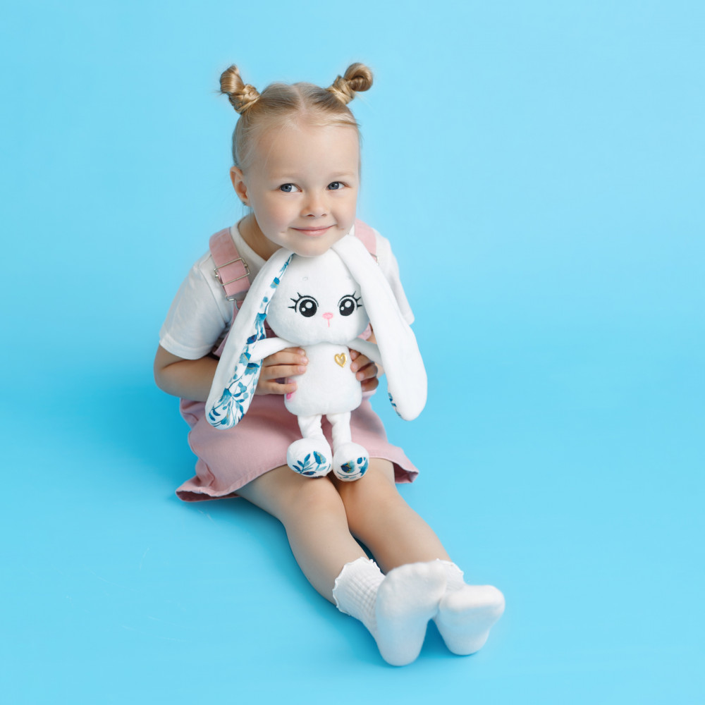 Милая плюшевая зайка с длинными ушками — желанный подарок ребенку, девушке, маме, сестре или подруге. Ушки и лапки игрушки зайца украшает принт, символизирующий зимние узоры. Благодаря оптимальному размеру (30 см) плюшевую игрушку для девочек можно взять с собой в дорогу, в детский сад или школу, и даже не расставаться с любимым персонажем ночью. Игрушка-обнимашка способствует сладкому и безмятежному сну.