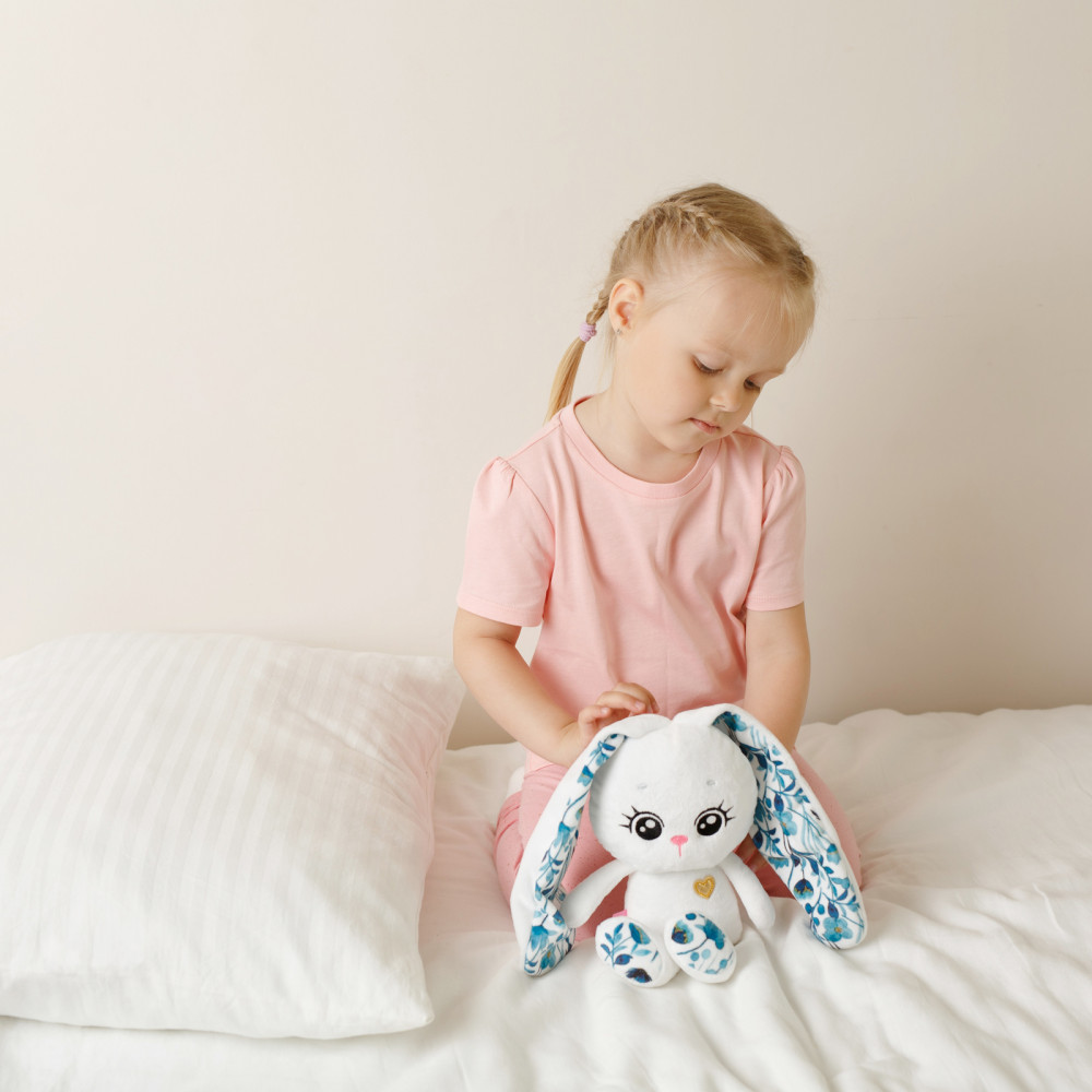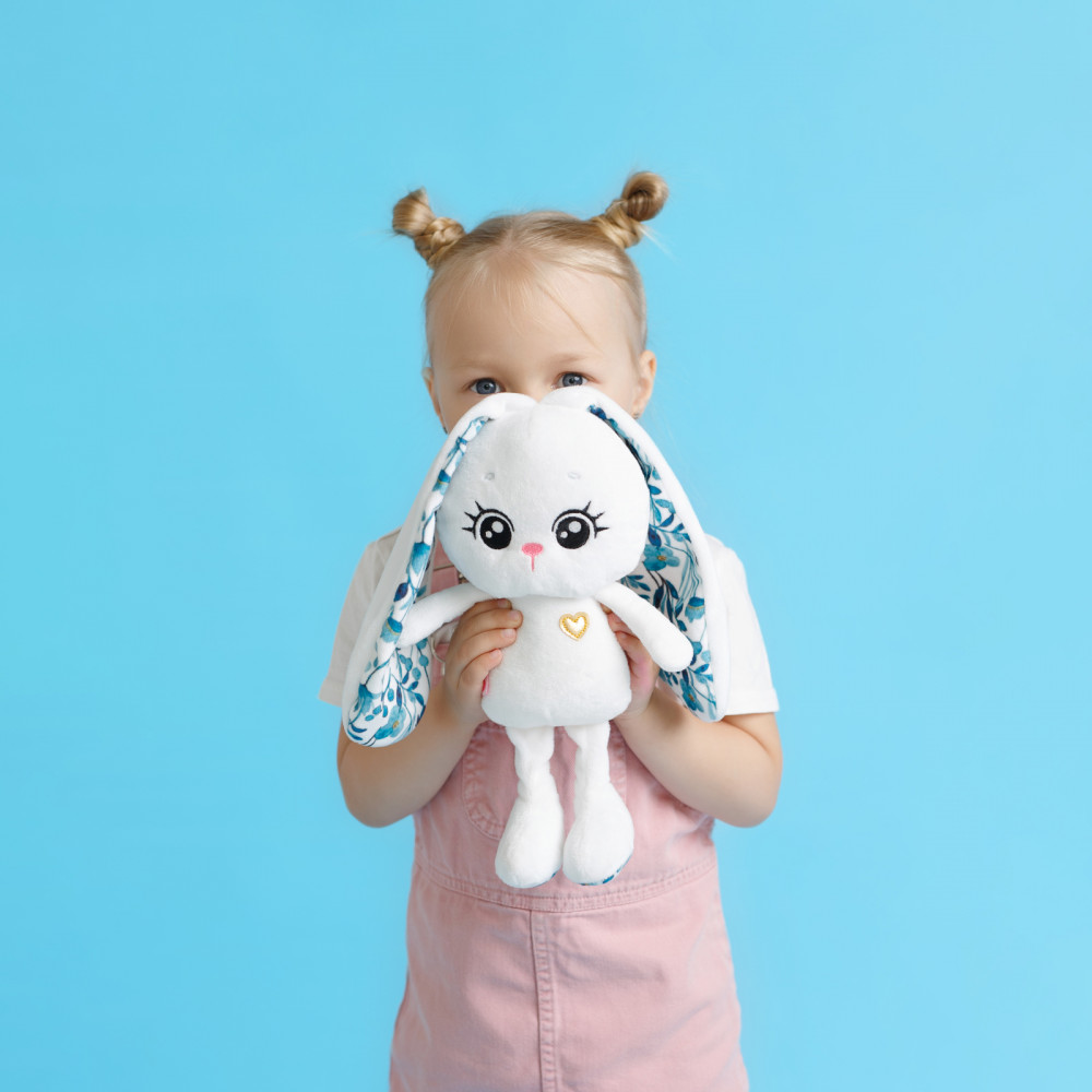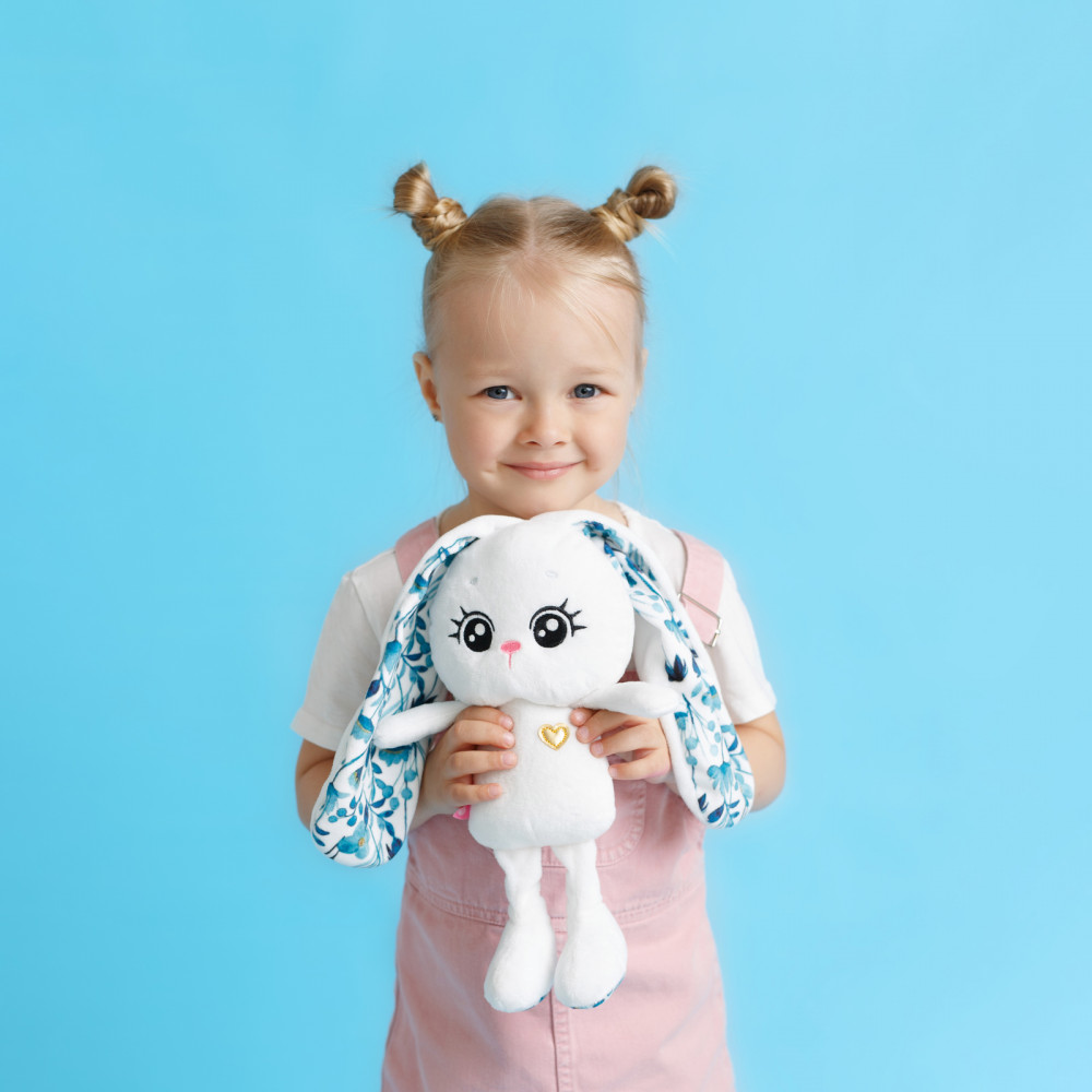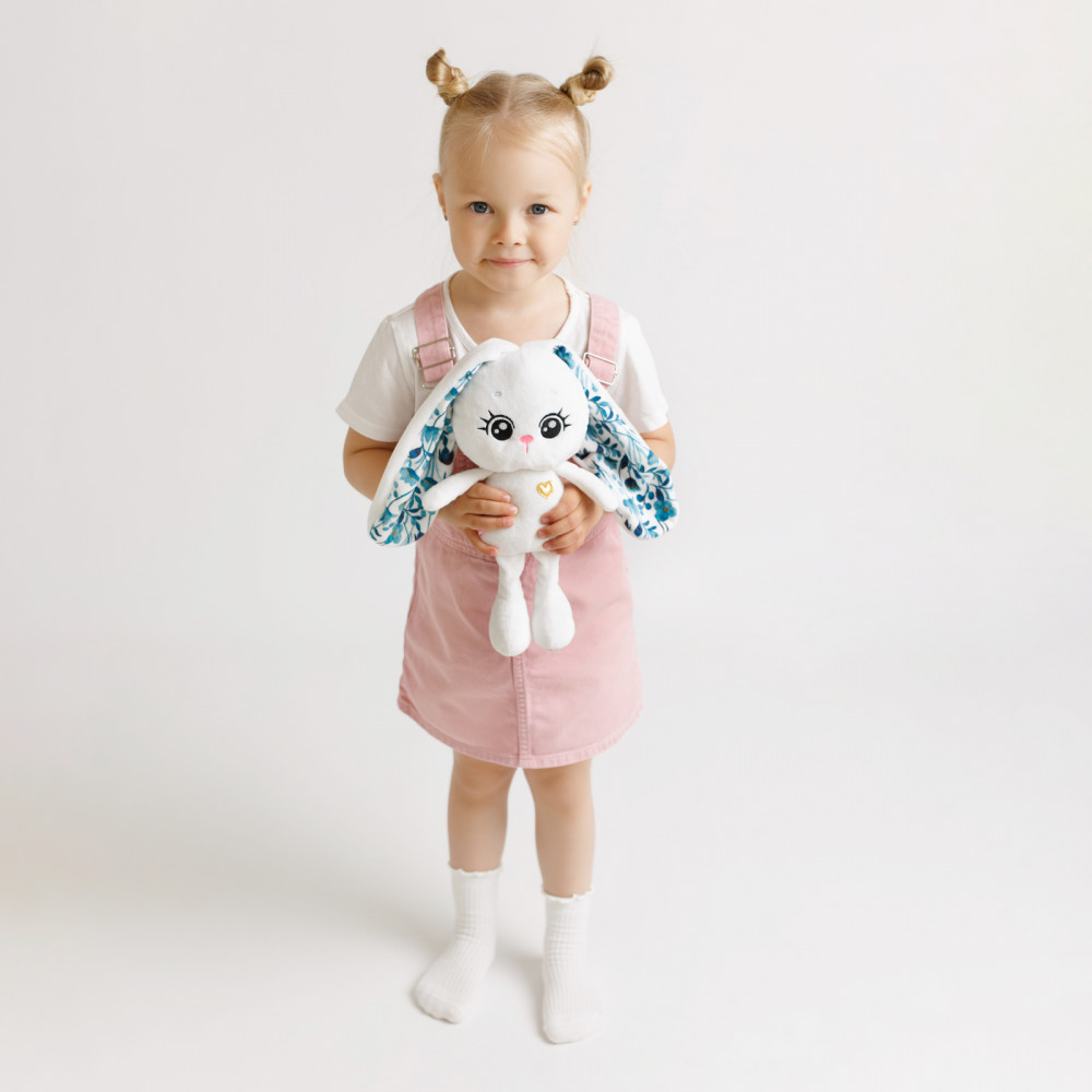 Милая плюшевая зайка с длинными ушками — желанный подарок ребенку, девушке, маме, сестре или подруге. Ушки и лапки игрушки зайца украшает принт, символизирующий зимние узоры. Благодаря оптимальному размеру (30 см) плюшевую игрушку для девочек можно взять с собой в дорогу, в детский сад или школу, и даже не расставаться с любимым персонажем ночью. Игрушка-обнимашка способствует сладкому и безмятежному сну.