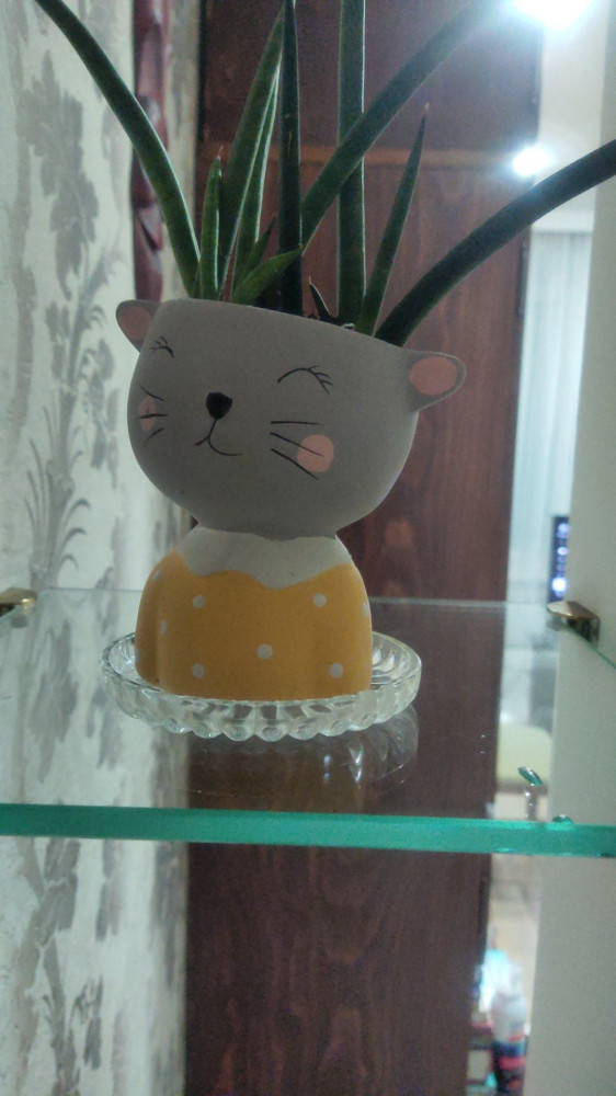 Очень милый, размер маленький, смотрится красиво на рабочем столе, посадила что-то вроде травы которую можно стричь :) Все умиляются