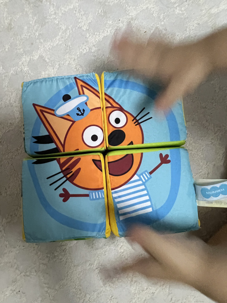 💳 Оплатить за товар можно при получении 🇰🇿 Есть бесплатная доставка по Казахстану от 1 дня 🎁 Копите бонусы с каждой покупки Серия: Три кота Одна из самых популярных игрушек для развития малышей — яркие цветные кубики с любимыми персонажами детского мультсериала «Три кота». Набор из 4 мягких кубиков размером 8 см выполнен из безопасных и безвредных материалов (100% хлопок) и не деформируется при стирке. |