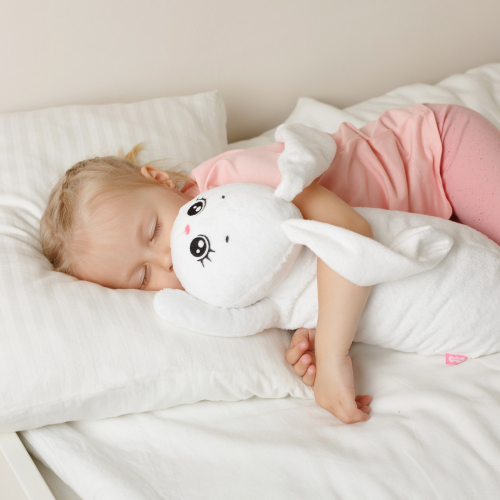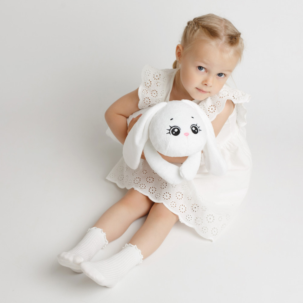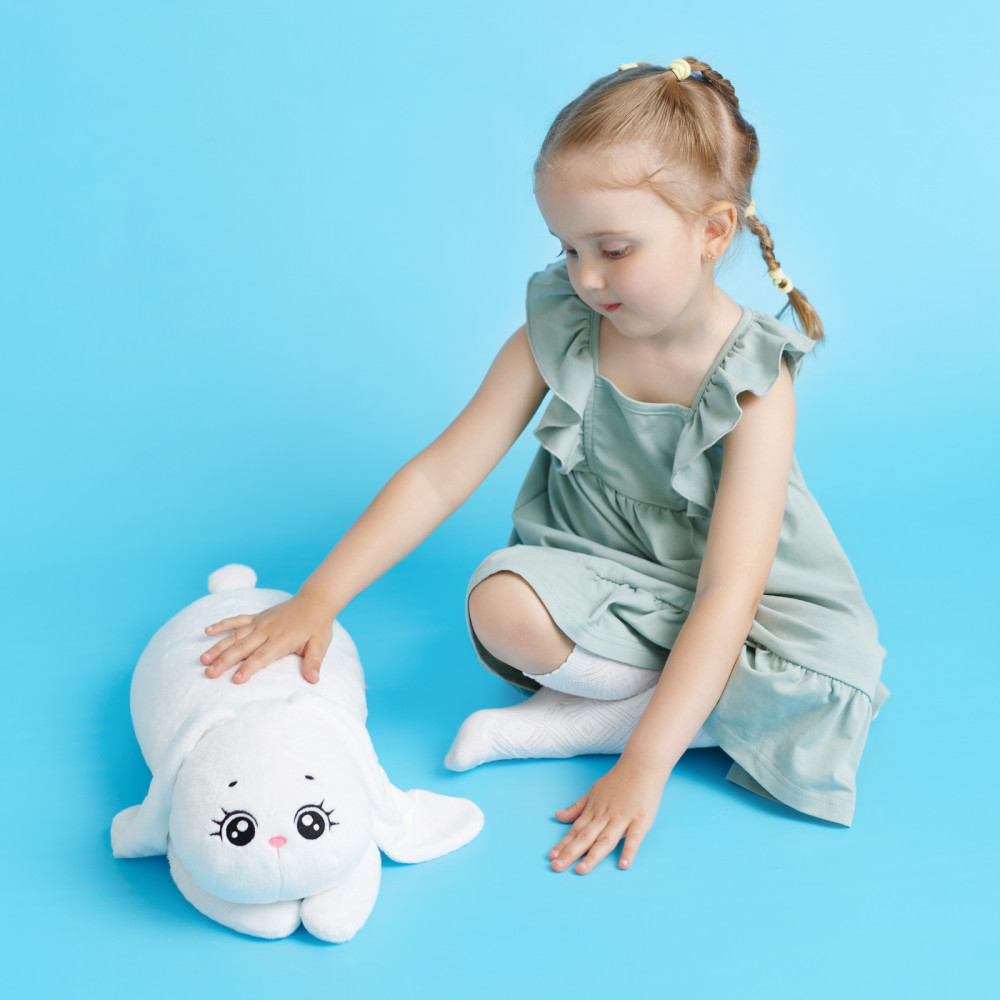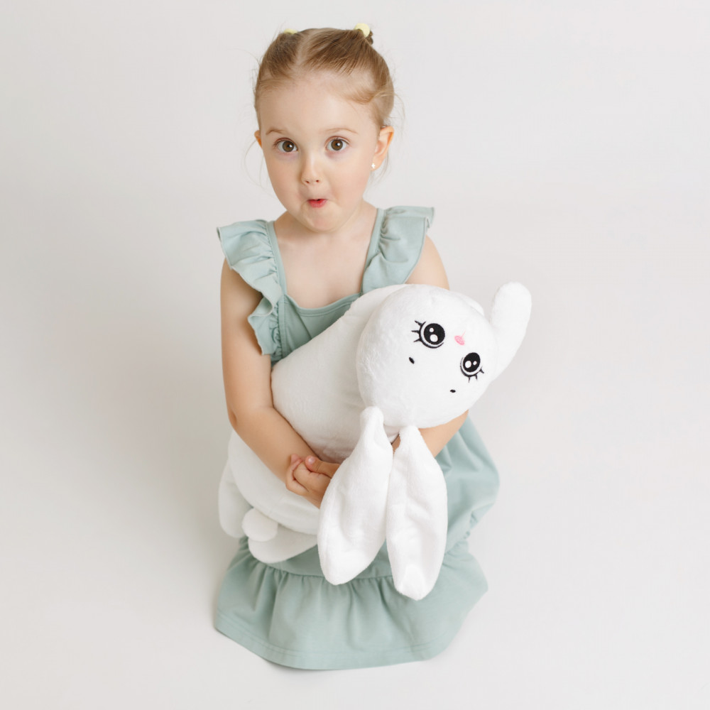 Милый зайчик станет лучшим другом ребенка, разделив с ним множество приятных моментов за игрой. Размер мягкой игрушки зайки позволит взять любимца с собой на прогулку, в гости или же отправиться с ним спать. Вытянутая форма игрушки идеально подходит для совместного сна. За счет современного дизайна и нейтральных оттенков зайки, ее можно использовать в качестве диванной игрушки подушки, которая украсит интерьер детской комнаты. Кроме того, Снежинка поможет справиться со стрессом, ведь ее так удобно и приятно держать в руках. Мягкая игрушка для малышей выполнена из натуральных материалов, которые не вызывают аллергию, и, поэтому, подходит даже для самых маленьких.