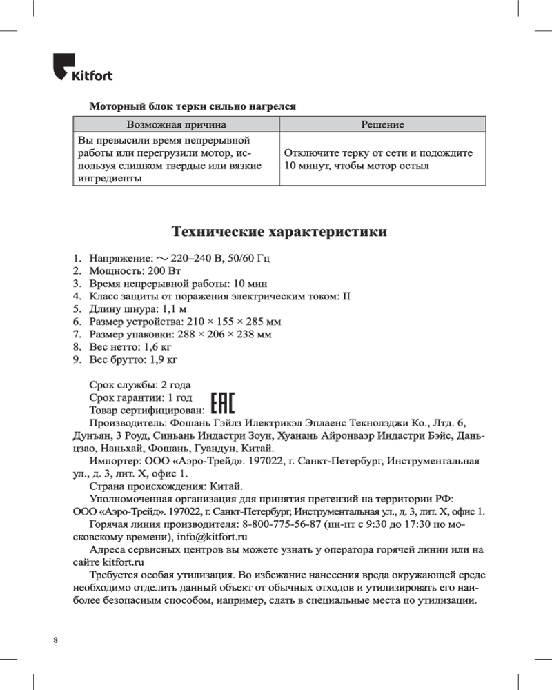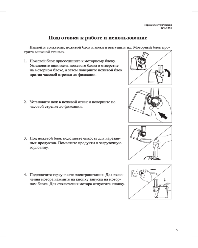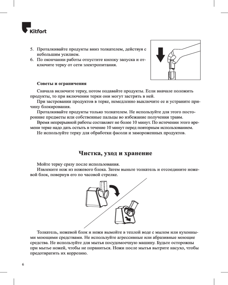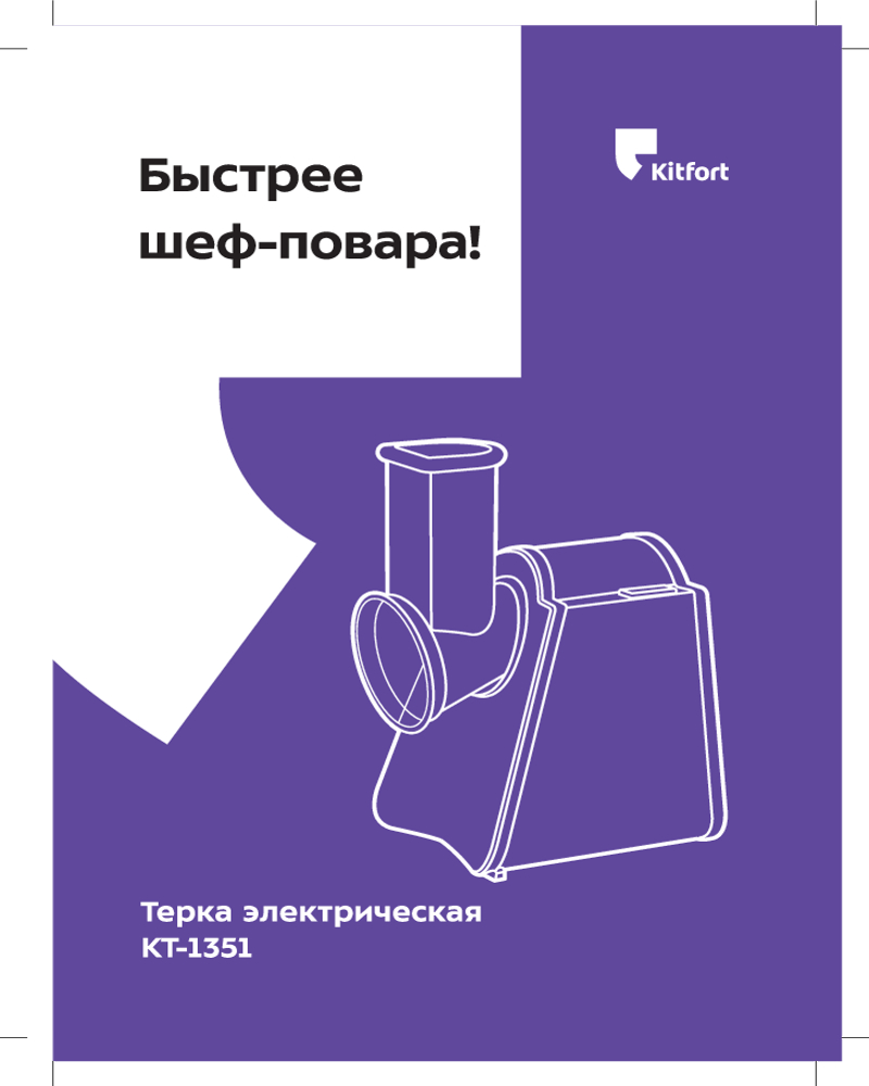 Электрическая тёрка Kitfort КТ-1351 безопасна и исключает возможность микротравм, благодаря своему удобному принципу работы — все продукты измельчаются автоматически, при этом контакт ножей тёрки с вашими руками исключён.
