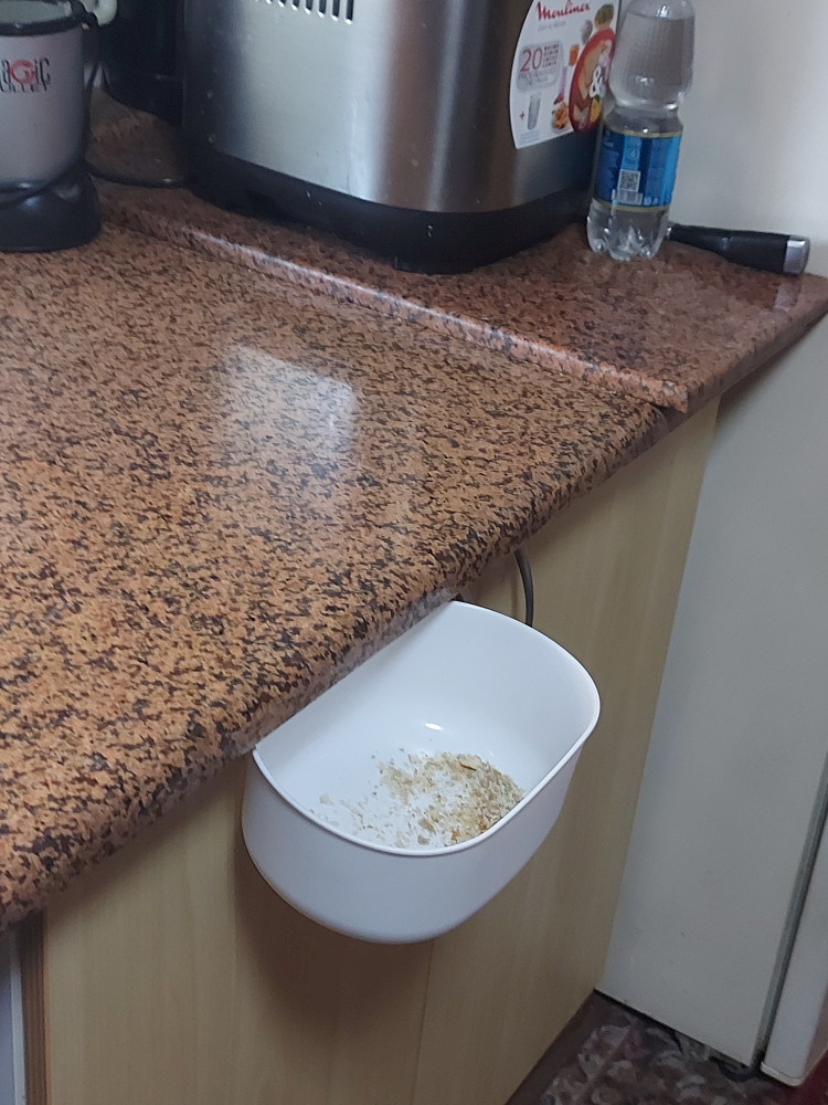 Очень удобная корзинка, всегда под рукой (крошки, отходы при нарезке овощей), не надо открывать никакие дверцы. Спасибо.