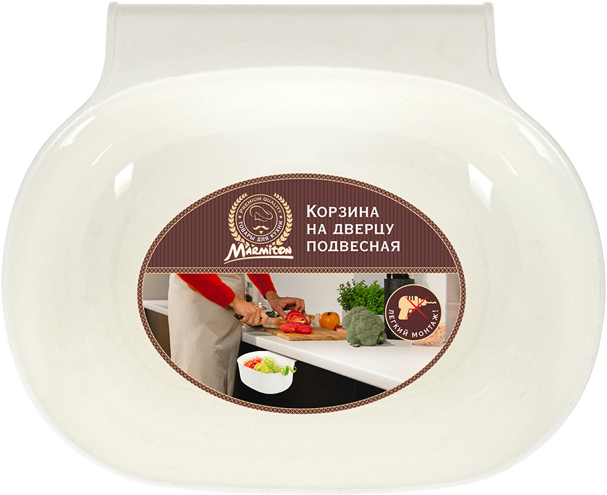 Marmiton Корзина подвесная на дверьВ данный момент этот товар отсутствует в продаже. Возможно, у нас найдется аналогичный или похожий товар здесь. Подвесная корзина используется для мелкого мусора, который образуется во время готовки. Навесная конструкция позволяет разместить емкость под рукой — на дверце шкафчика. Подходит для дверцы толщиной 1,8 см. Корзина также подойдет для хранения хозяйственных принадлежностей |