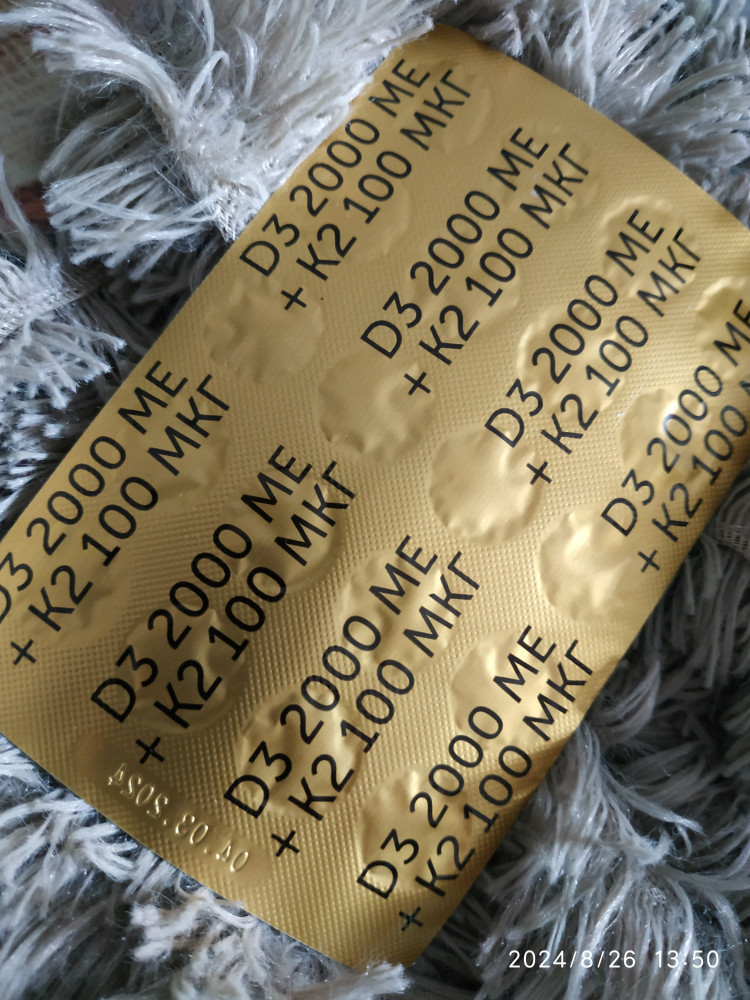 прислали открыто и без защитного покрытия, внутри таблетки может подменили , толком не написано, что за фирма, ничего , там д3 2000 ме+ к2100 мкг