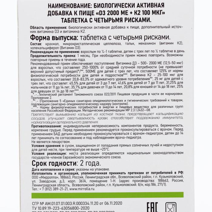 Mirrolla Витамины D3+K2+72 удобный размер подходящая дозировка комплекс D3+K2