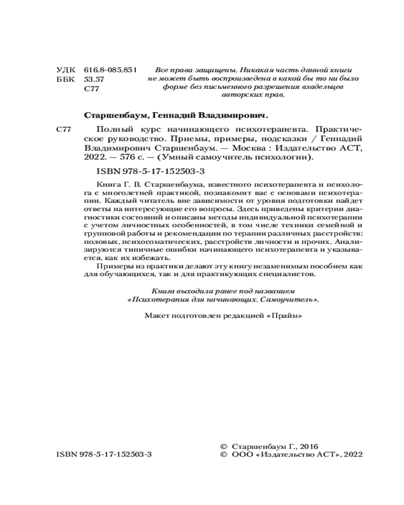 Полный курс начинающего психотерапевта. Практическое руководство. Приемы, примеры, подсказкиГеннадий Владимирович Старшенбаум -20% +44