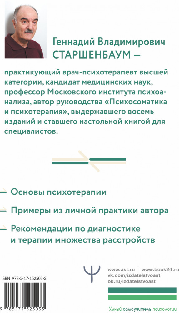 💳 Оплатить за товар можно при получении 🇰🇿 Есть бесплатная доставка по Казахстану от 1 дня 🎁 Копите бонусы с каждой покупки Серия: Умный самоучитель психологии Геннадий Старшенбаум — автор с многолетней психотерапевтической практикой, — помог наладить жизнь тысячам человек. Эта книга станет настольной для студентов и выпускников, теоретиков и практиков, а также преподавателей в области психотерапии, потому что материал в ней структурирован максимально четко и ясно. |