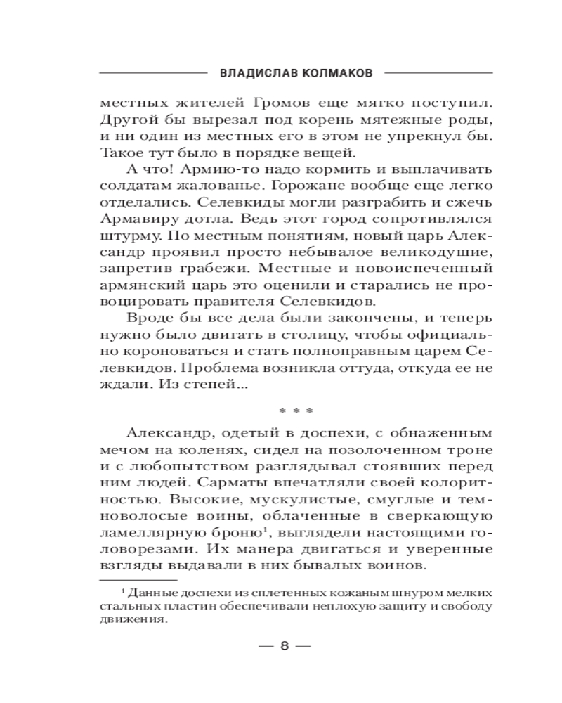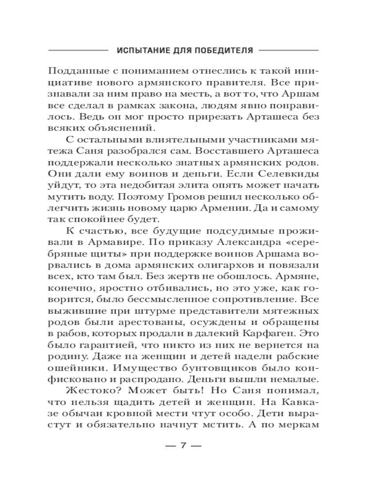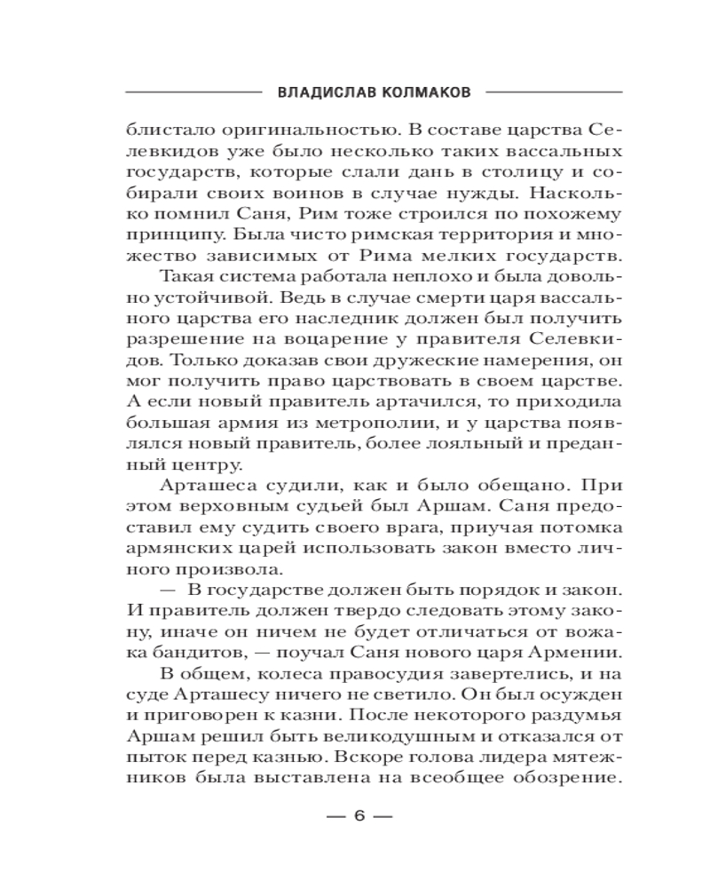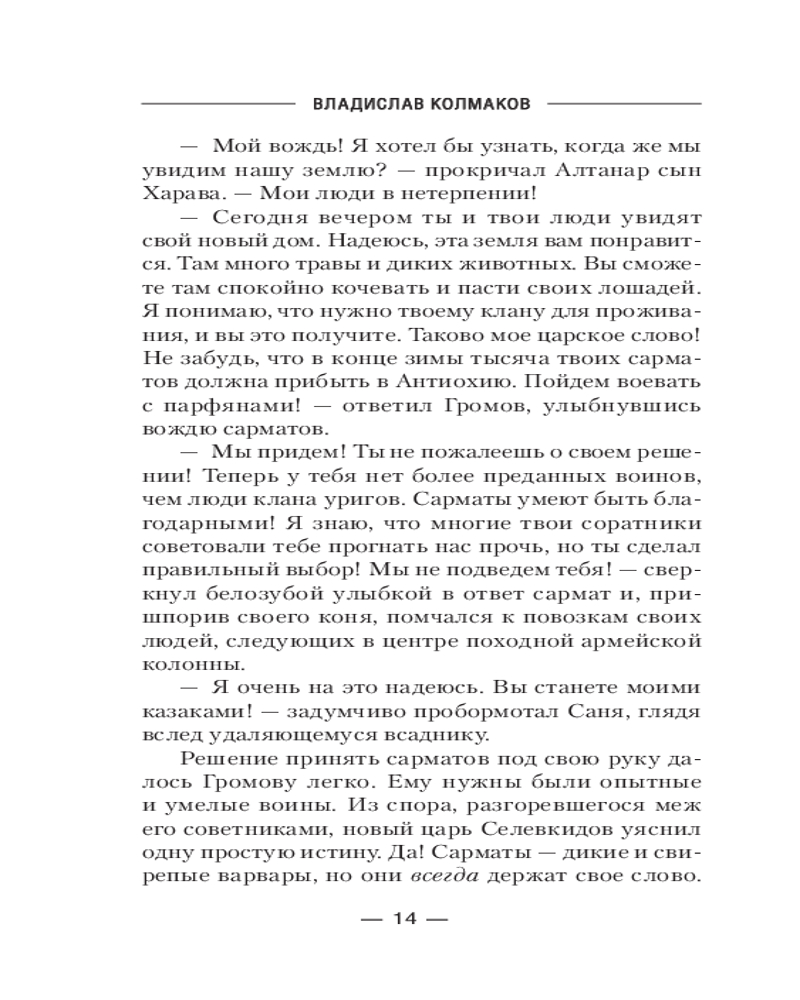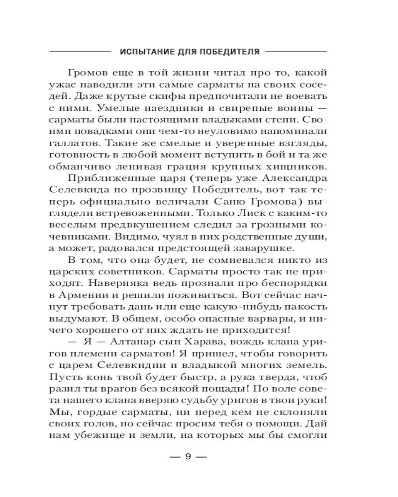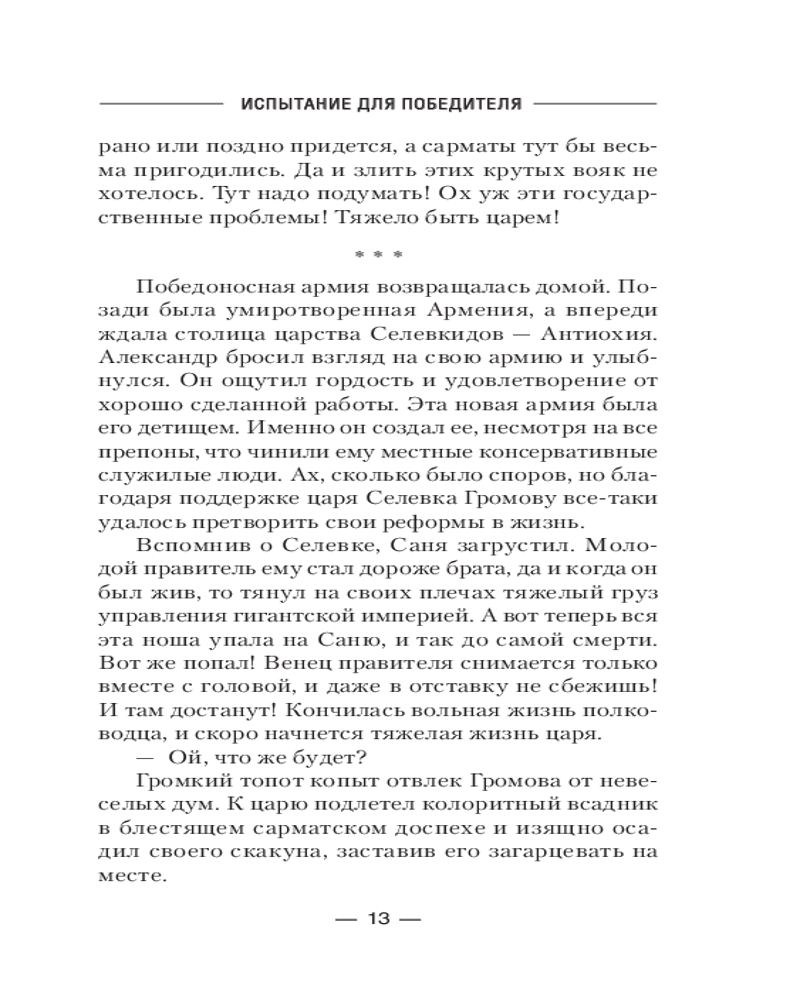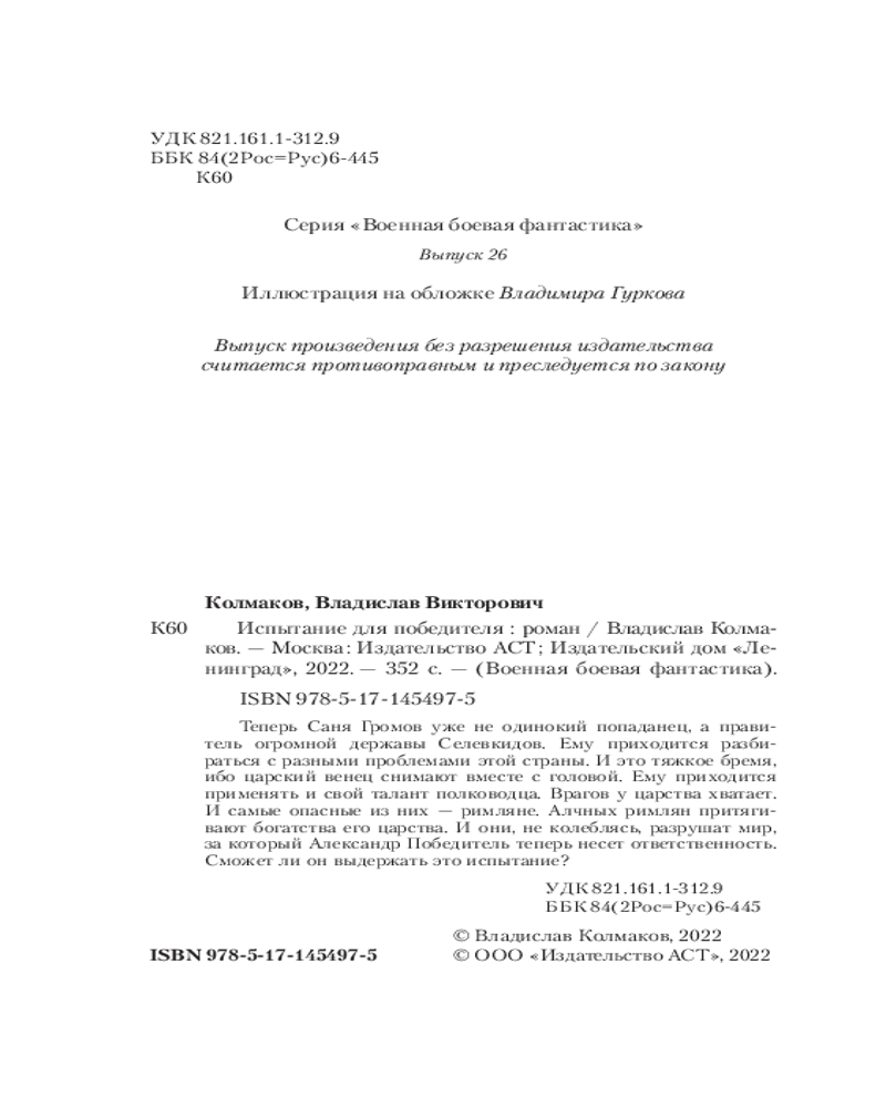 💳 Оплатить за товар можно при получении 🇰🇿 Есть бесплатная доставка по Казахстану от 1 дня 🎁 Копите бонусы с каждой покупки Серия: Военная боевая фантастика Теперь Саня Громов уже не одинокий попаданец, а правитель огромной державы Селевкидов. Ему приходится разбираться с разными проблемами этой страны. И это тяжкое бремя, ибо царский венец снимают вместе с головой. Ему приходится применять и свой талант полководца. Врагов у царства хватает. И самые опасные из них — римляне. Алчных римлян притягивают богатства его царства. И они, не колеблясь, разрушат мир, за который Александр Победитель теперь несет ответственность. Сможет ли он выдержать это испытание? |