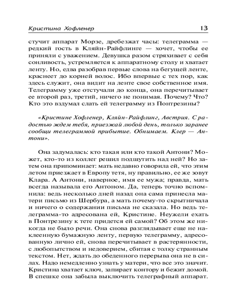 В данный момент этот товар отсутствует в продаже. Возможно, у нас найдется аналогичный или похожий товар здесь. Серия: Зарубежная классика «Кристина Хофленер» — второй роман Стефана Цвейга, написанный в 1930-е годы, обнаруженный в архивах писателя и опубликованный лишь спустя 40 лет после его смерти.