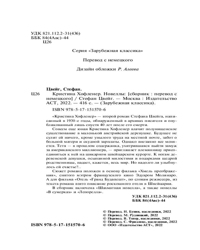 | Кристина Хофленер. Новеллы Стефан Цвейг