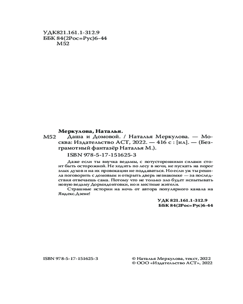 💳 Оплатить за товар можно при получении 🇰🇿 Есть бесплатная доставка по Казахстану от 1 дня 🎁 Копите бонусы с каждой покупки Серия: Безграмотный фантазёр Наталья М Даже если ты внучка ведьмы, с потусторонними силами стоит быть осторожной. Не ходить по лесу в ночи, не пускать на порог злых духов и на их провокации не поддаваться. Но если уж ты решила поговорить с домовым и открыть дверь незнакомке — за последствия отвечаешь сама. Потому что не только зло будет испытывать новую ведьму Дормидонтовки, но и местные жители. Страшные истории на ночь от автора популярного канала на Яндекс.Дзене! |