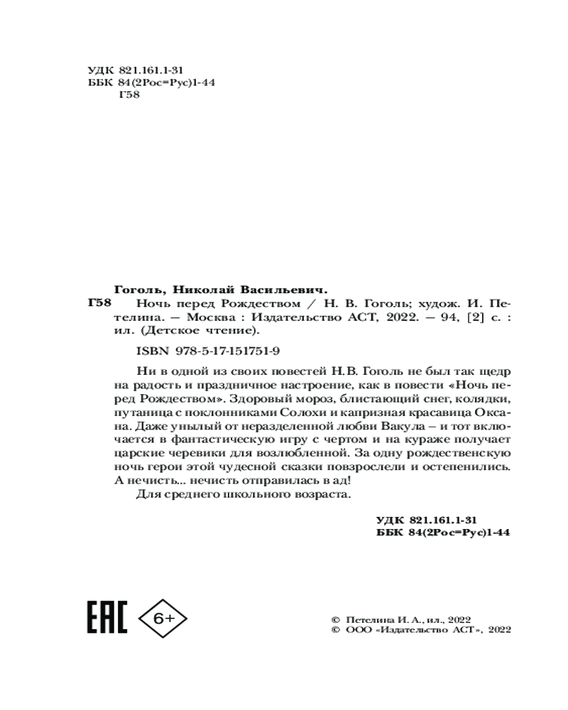 Ночь перед Рождеством+60 переплёт иллюстрации шрифт