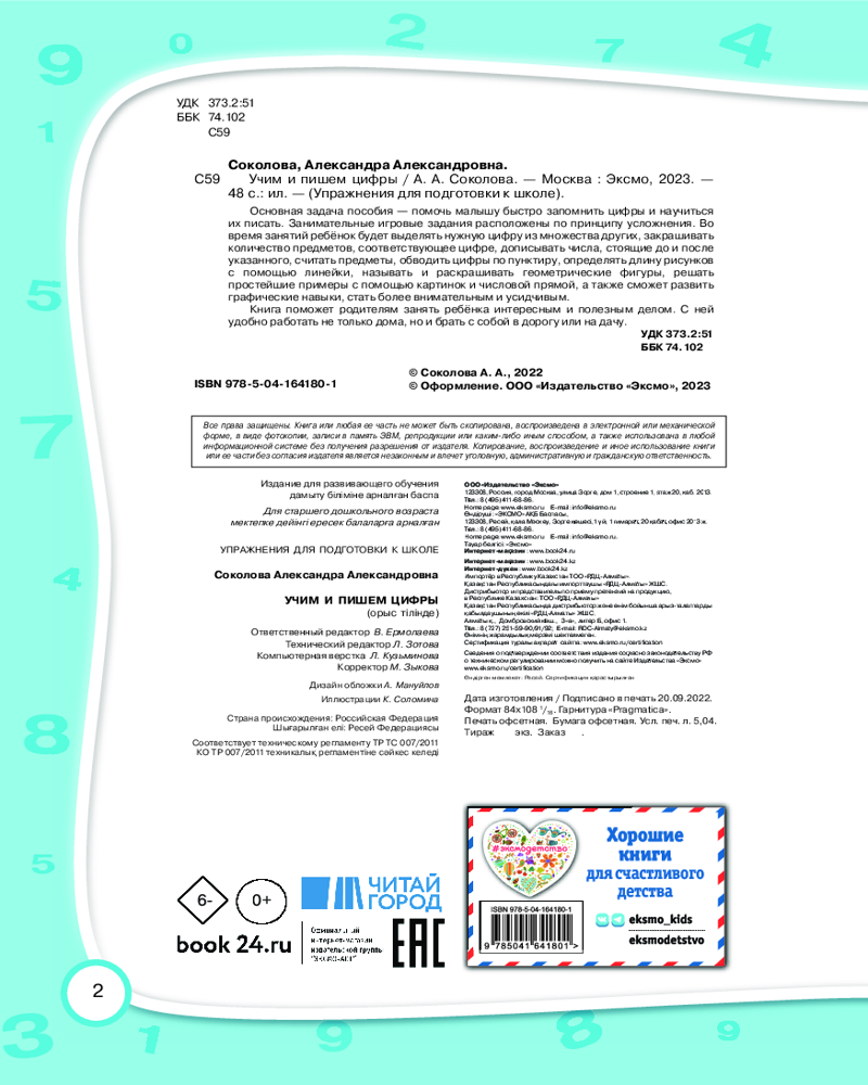 💳 Оплатить за товар можно при получении 🇰🇿 Есть бесплатная доставка по Казахстану от 1 дня 🎁 Копите бонусы с каждой покупки Серия: Упражнения для подготовки к школе (обложка) Очень важно не просто быстро запомнить цифры, но и научиться их писать. Если мелкая моторика и графические навыки не развиты, то ребенок будет испытывать трудности в школе. |