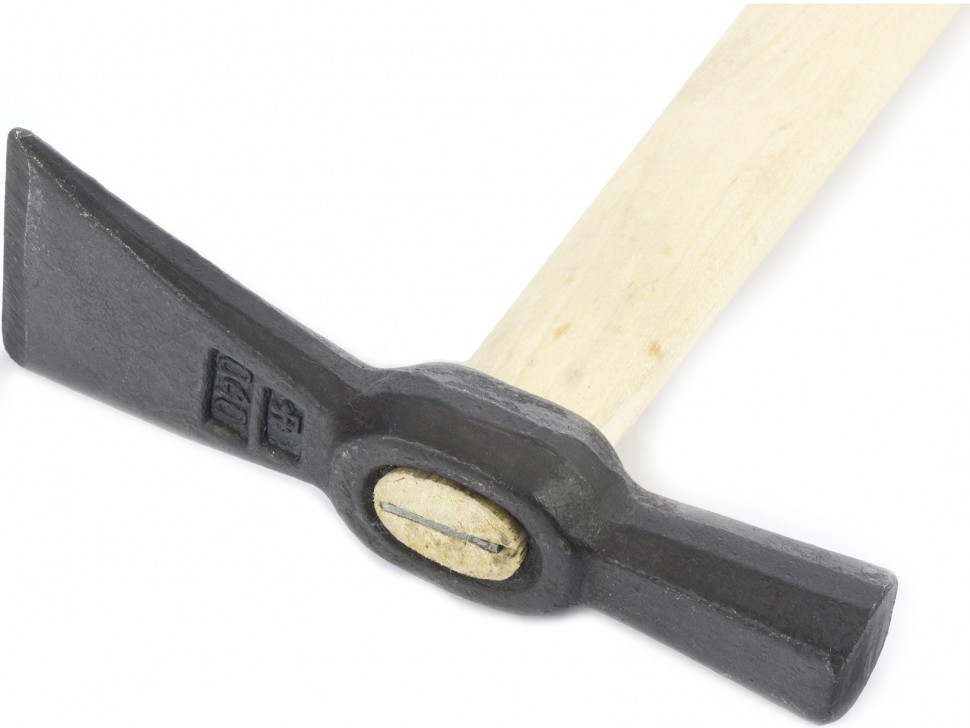 Головка изготовлена из среднеуглеродистой стали 50, обеспечивающей прочность и износостойкость рабочих частей инструмента. Рабочие части молотка закалены до твердости 48-52 HRC, благодаря чему выдерживают многократные ударные нагрузки без риска деформации. Головка надежно зафиксирована на рукоятке при помощи клина, поэтому не отвалится при ударе. Рукоятка изготовлена из твердой древесины и покрыта бесцветным лаком, защищающим ее от рассыхания.
