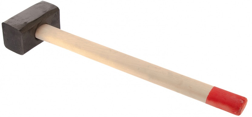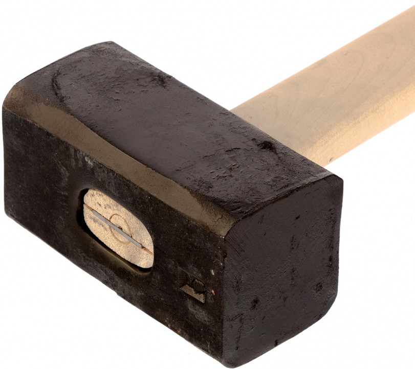 Инструмент характеризуется повышенной прочностью и долговечностью, т.к. голова изготовлена из среднеуглеродистой стали 50 марки, закалена в печи и имеет оптимальную твердость 30-50 HRC на всю глубину. Боек со снятыми фасками обеспечивает безопасность при работе — откалывание кусочков при нанесении ударов исключено. Головка крепко держится на расклиненной рукоятке и не соскочит во время использования. Рукоятка их отшлифованной древесины высокого качества не скользит в руках даже в дождливую погоду. Рукоятка ремонтопригодна — если она сломается, не придется приобретать новую кувалду.