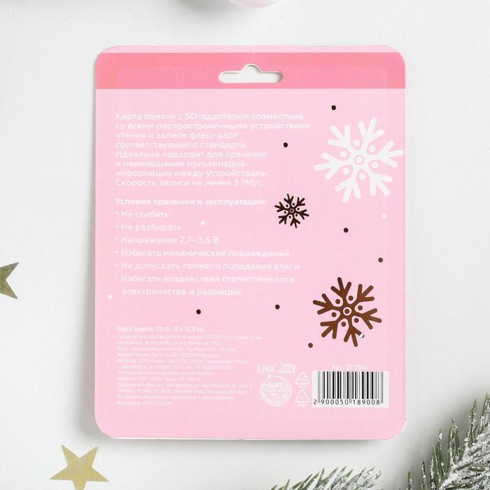 Карта памяти с SD-адаптером совместима со всеми распространёнными устройствами чтения и записи флеш-карт соответствующего стандарта. Идеально подходит для хранения и перемещения мультимедиа-информации между устройствами. Скорость записи не менее 5 Мб/с.