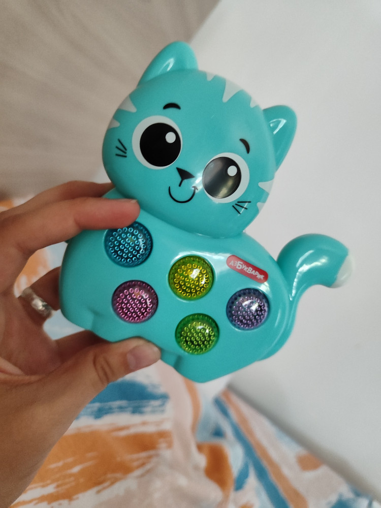Милый котенок. Играет тихо. Все кнопочки мигают разными цветами. Деткам нравится!