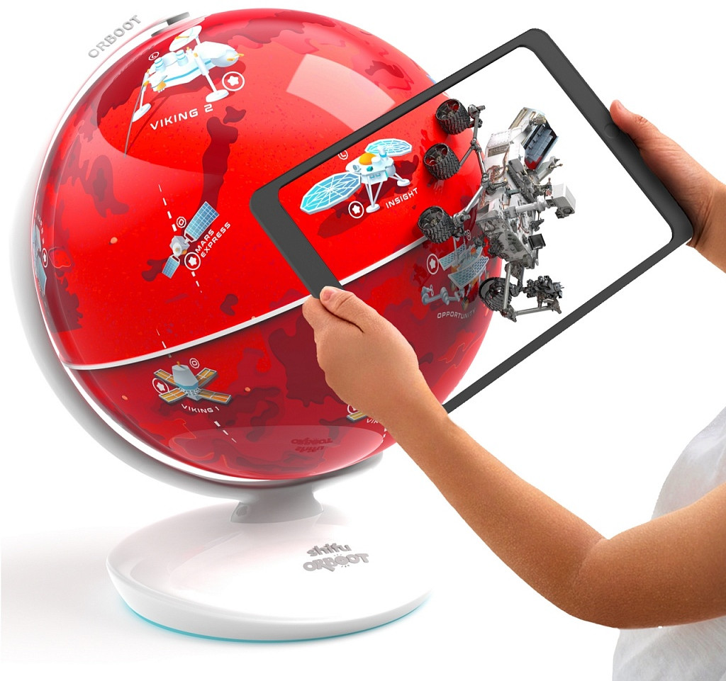 Глобус является интерактивным и работает через AR (дополненная реальность). Благодаря этой технологии, окружающая реальность становится больше и увлекательнее. Нужен лишь смартфон или планшет с приложением. Камеру мобильного устройства наводятся на глобус, после чего он оживает на экране. Дополненная реальность позволит вашему ребенку испытать удивительные ощущения.