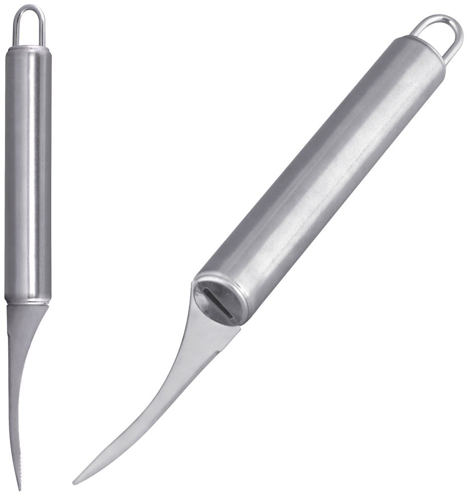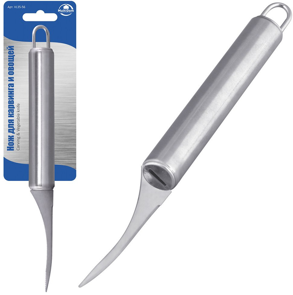 Это самый популярный нож на любой кухне — он нужен ежеминутно при готовке. Им удобно чистить и резать овощи или фрукты. Благодаря изогнутой форме лезвия вы с легкостью и минимальным количеством отходов сможете очистить от кожуры ваши любимые овощи и фрукты. С помощью острого кончика лезвия вы без труда справитесь с картофельными «глазками». Этот нож станет незаменимым помощником на Вашей кухне.