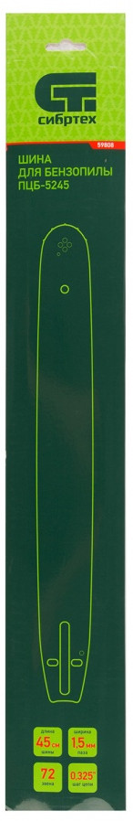 Шина Сибртех 59808 применяется с бензопилой Сибртех ПЦБ-5245 для распиловки древесины мягкой и средней жесткости. Благодаря длине 45 см и шагу цепи 0,325″ она идеально подходит для мелкого строительства, работы на участке, заготовки дров, применении в полевых условиях.