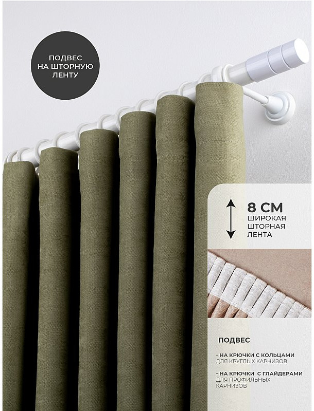 Очень хорошее качество. Лента широкая, одела крючки на нижний ряд, и штора не провисает и карниз закрыло. Ткань смотрится очень эффектно, сшита качественно.