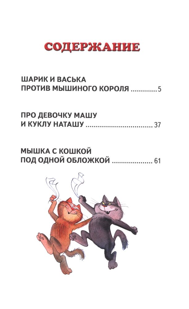 Содержание «Наше вам с кисточкой!» Шарик и Васька против мышиного короля Мышка с кошкой под одной обложкой Про девочку Машу и куклу Наташу