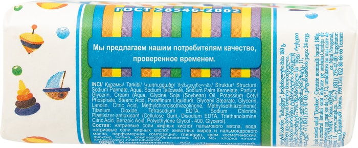 Рецепты чистоты Мыло туалетное «Детское»В данный момент этот товар отсутствует в продаже. Возможно, у нас найдется аналогичный или похожий товар здесь. Туалетное мыло «Детское» для купания производится на той же основе, что и традиционное «Детское», отмеченное российским знаком качества. Его гипоаллергенность подтверждена лабораторными испытаниями. Мыло «Детское» для купания имеет приятный аромат сливочного десерта, привлекающего и детей, и взрослых, и упаковано в хрустящую бумагу с ярким дизайном, как будто только что сошедшим со страниц детских сказок. |