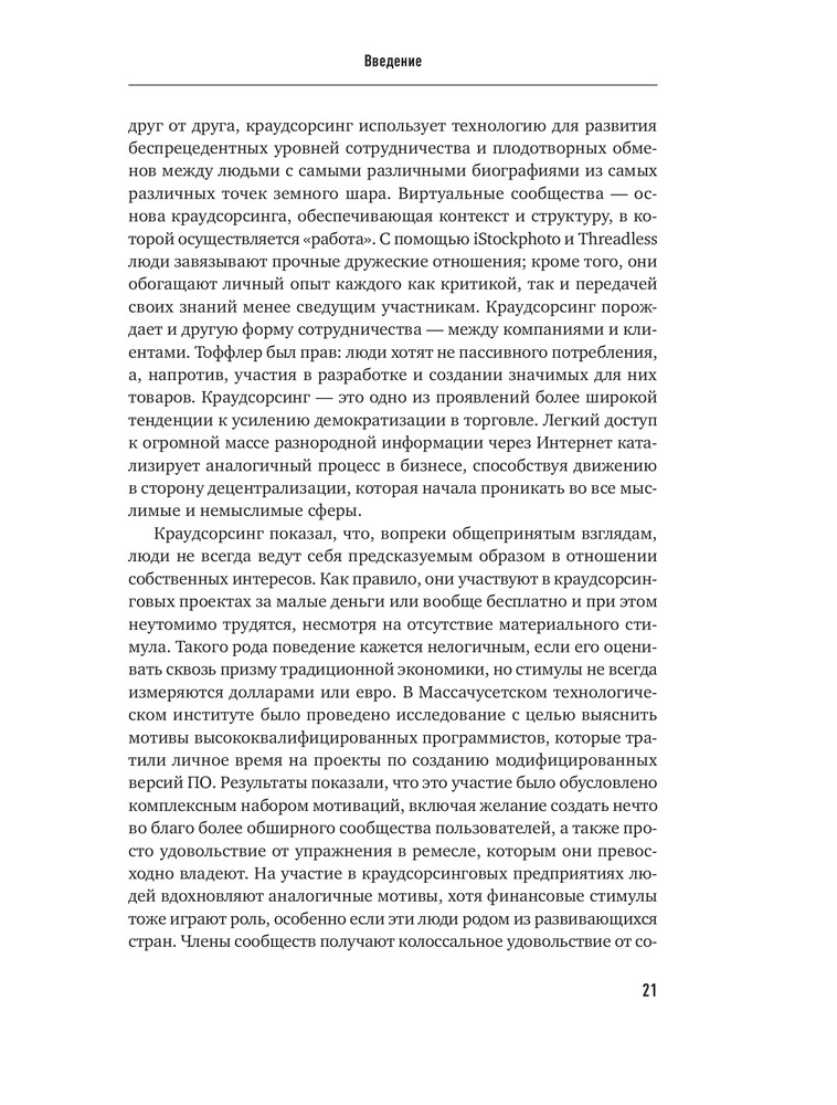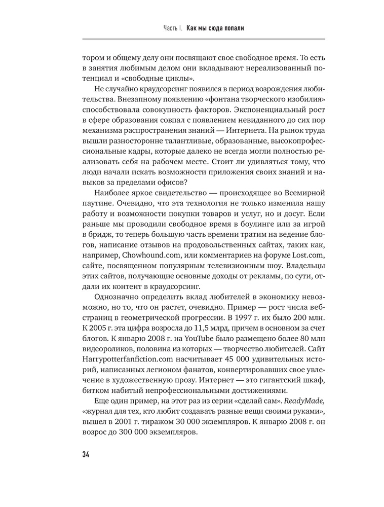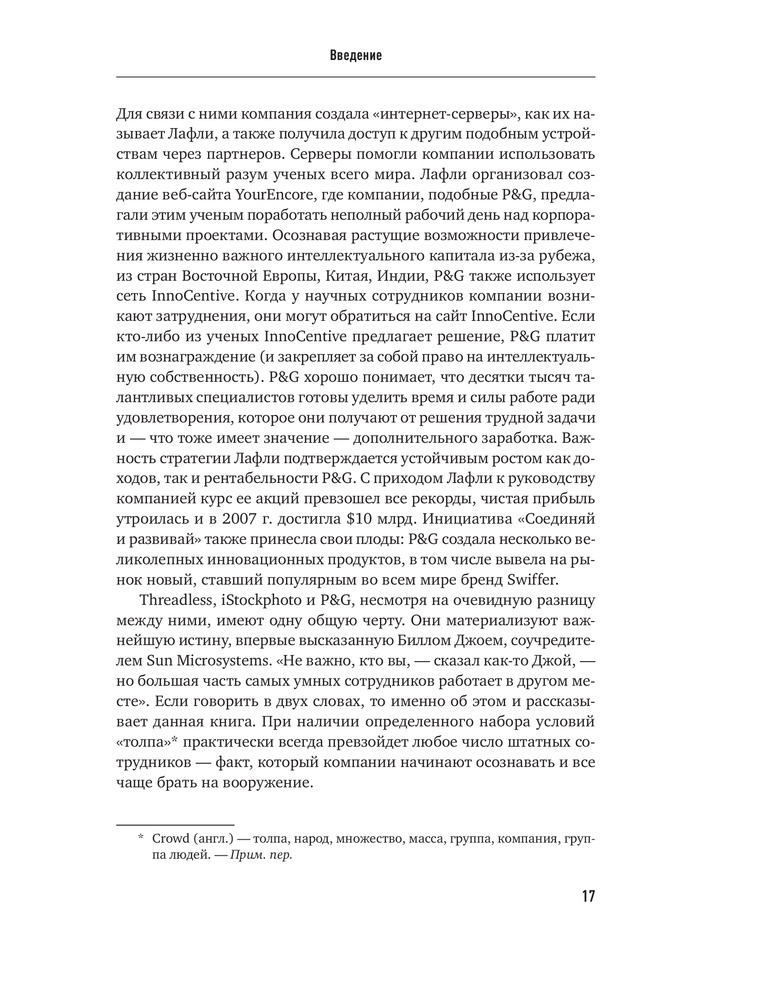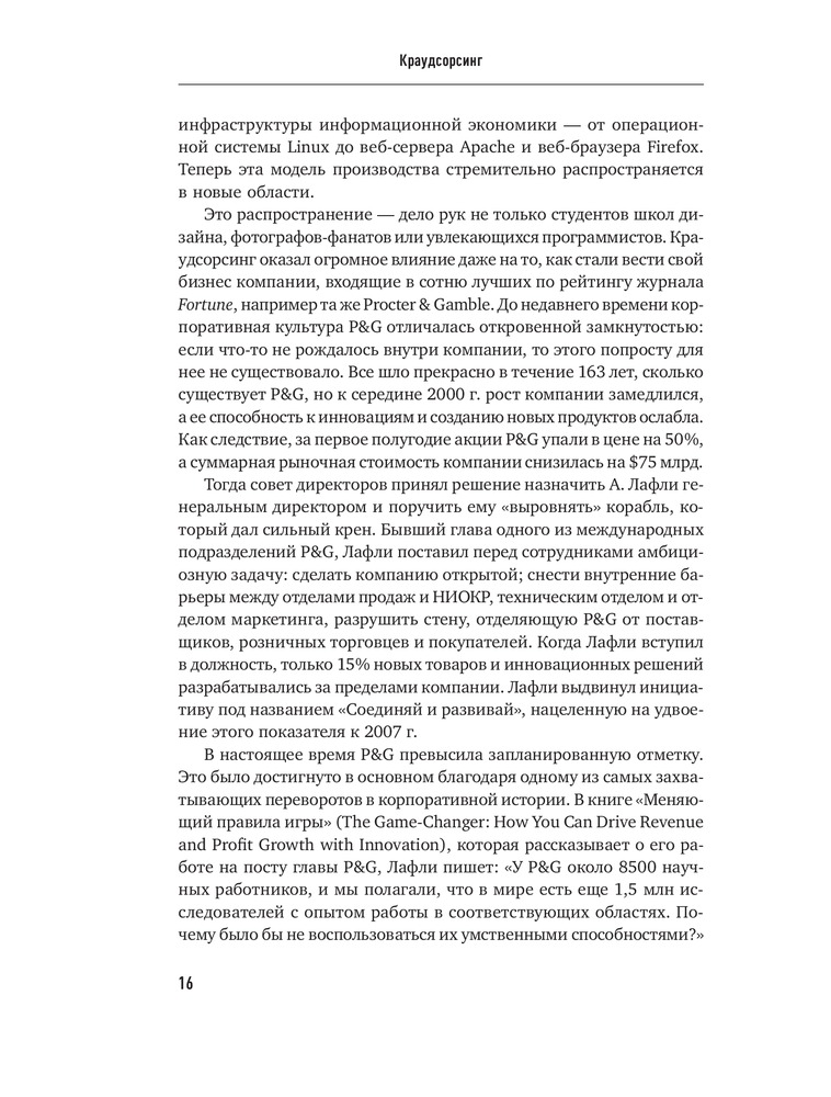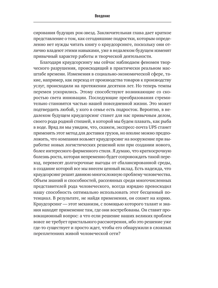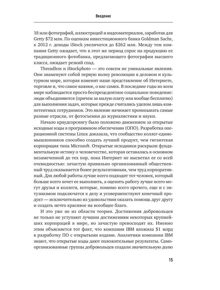 Краудсорсинг. Коллективный разум как инструмент развития бизнесаВ данный момент этот товар отсутствует в продаже. Возможно, у нас найдется аналогичный или похожий товар здесь. Краудсорсинг основан на одной простой идее: коллективный разум всегда более продуктивен, чем отдельный, даже самый гениальный человек; а достижения добровольцев-любителей зачастую превосходят достижения экспертов крупнейших глобальных корпораций. О том, почему так происходит и как можно использовать энтузиазм и знания многих миллионов интернет-пользователей, и пишет Джефф Хау. |