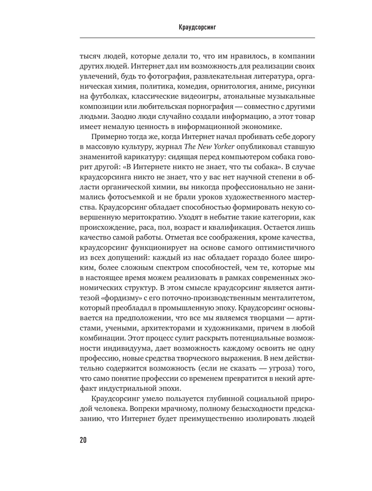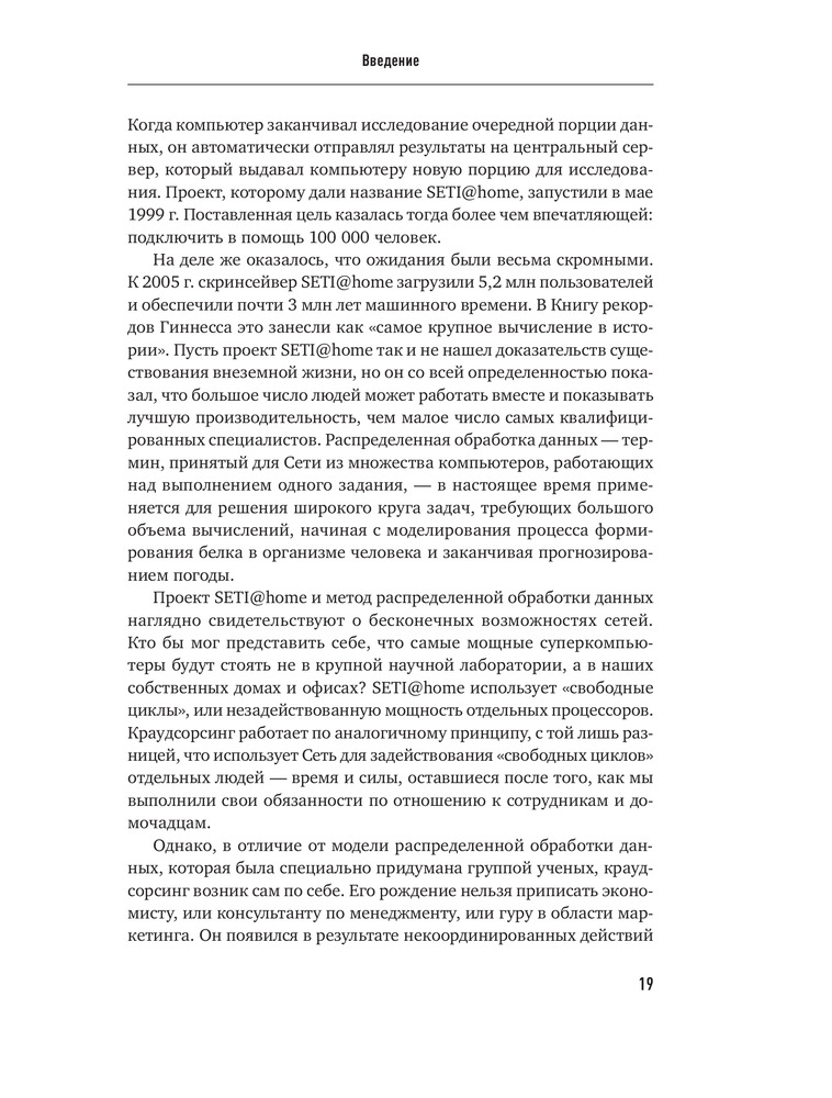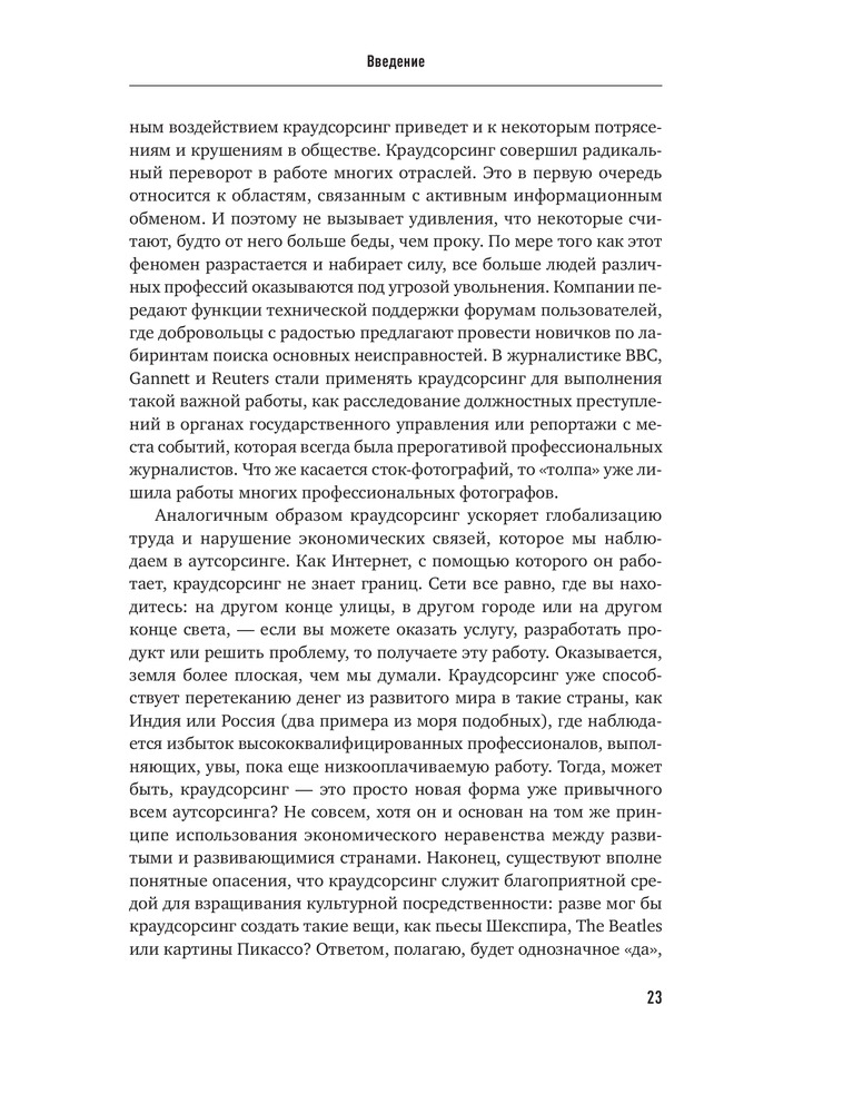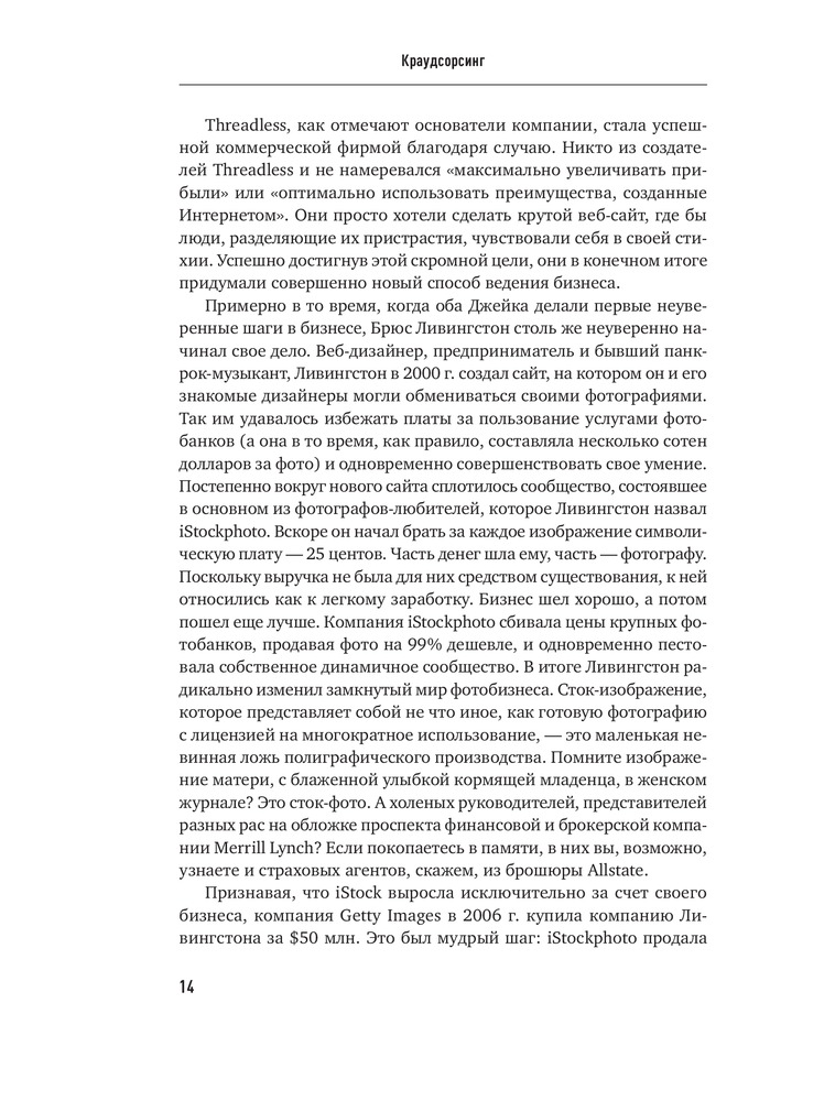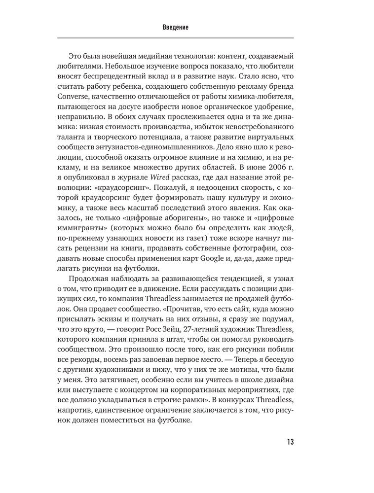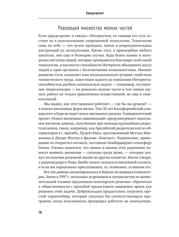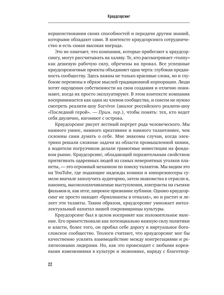 Краудсорсинг. Коллективный разум как инструмент развития бизнесаВ данный момент этот товар отсутствует в продаже. Возможно, у нас найдется аналогичный или похожий товар здесь. Краудсорсинг основан на одной простой идее: коллективный разум всегда более продуктивен, чем отдельный, даже самый гениальный человек; а достижения добровольцев-любителей зачастую превосходят достижения экспертов крупнейших глобальных корпораций. О том, почему так происходит и как можно использовать энтузиазм и знания многих миллионов интернет-пользователей, и пишет Джефф Хау. |