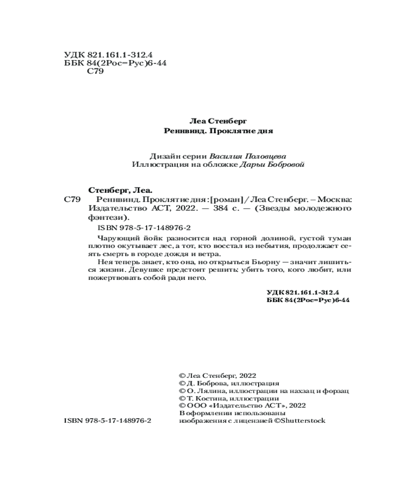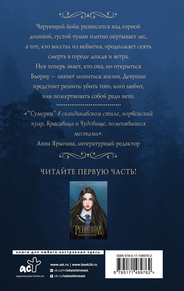 💳 Оплатить за товар можно при получении 🇰🇿 Есть бесплатная доставка по Казахстану от 1 дня 🎁 Копите бонусы с каждой покупки Серия: Звезды молодежного фэнтези Чарующий йойк разносится над горной долиной, густой туман плотно окутывает лес, а тот, кто восстал из небытия, продолжает сеять смерть в городе дождя и ветра. Нея теперь знает, кто она, но открыться Бьорну — значит лишиться жизни. Девушке предстоит решить: убить того, кого любит, или пожертвовать собой ради него. |