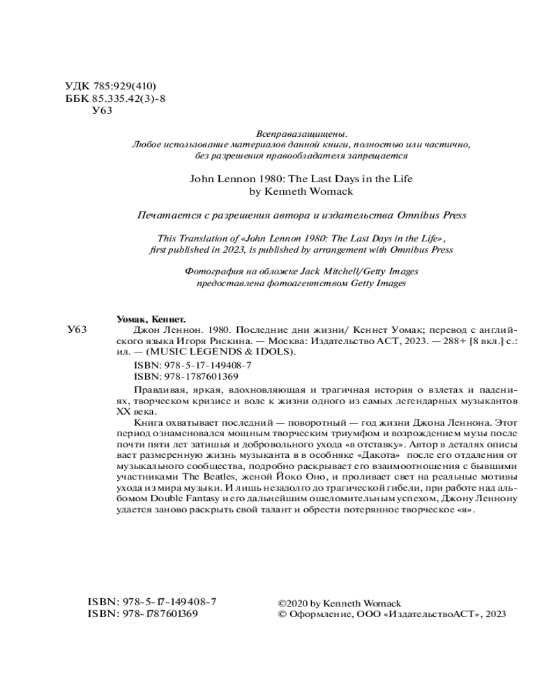 💳 Оплатить за товар можно при получении 🇰🇿 Есть бесплатная доставка по Казахстану от 1 дня 🎁 Копите бонусы с каждой покупки Серия: Music Legends & Idols Правдивая, яркая, вдохновляющая и трагичная история о взлетах и падениях, творческом кризисе и воле к жизни одного из самых легендарных музыкантов XX века. Книга охватывает последний — поворотный — год жизни Джона Леннона. Этот период ознаменовался мощным творческим триумфом и возрождением музы после почти пяти лет затишья и добровольного ухода «в отставку». Автор в деталях описывает размеренную жизнь музыканта в в особняке «Дакота» после его отдаления от музыкального сообщества, подробно раскрывает его взаимоотношения с бывшими участниками The Beatles, женой Йоко Оно, и проливает свет на реальные мотивы ухода из мира музыки. И лишь незадолго до трагической гибели, при работе над альбомом Double Fantasy и его дальнейшим ошеломительным успехом, Джону Леннону удается заново раскрыть свой талант и обрести потерянное творческое «я». |