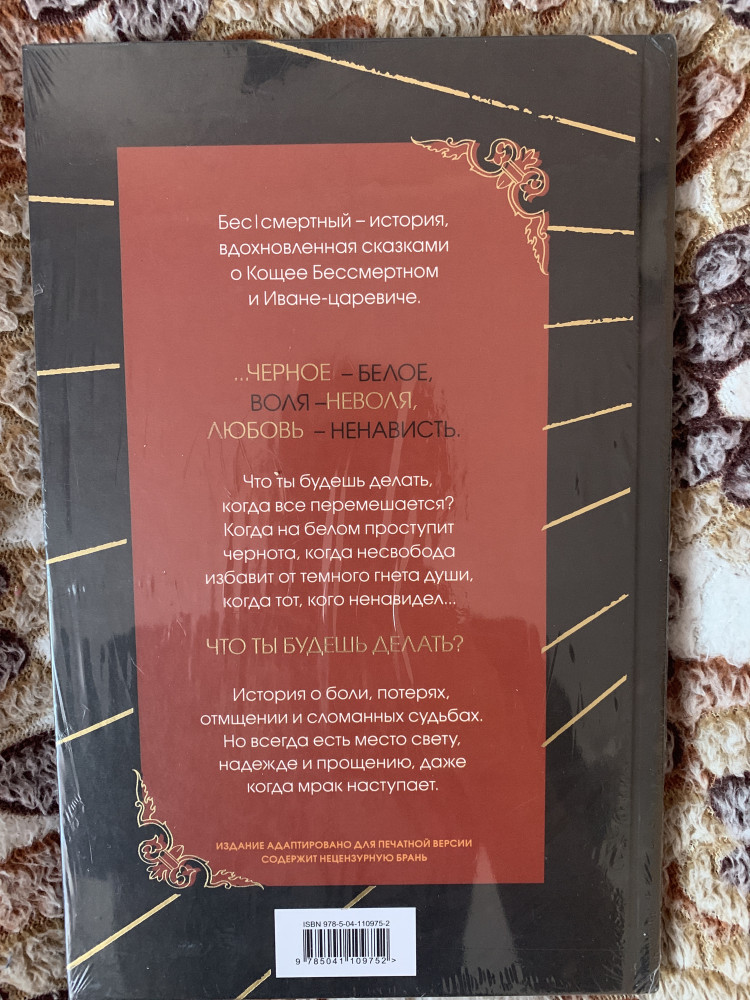 Бес|смертныйкачество печати обложка бумага тиснение страницы В данный момент этот товар отсутствует в продаже. Возможно, у нас найдется аналогичный или похожий товар здесь. ...черное — белое, воля — неволя, любовь — ненависть. Что ты будешь делать, когда все перемешается? Когда на белом проступит чернота, когда несвобода избавит от темного гнета души, когда тот, кого ненавидел... |