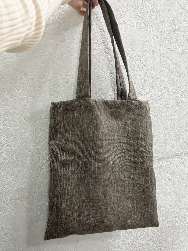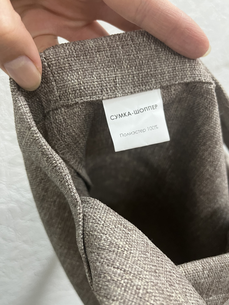 Цвет в реальности не как на фото, а грязный серо-коричневый что ли. Ручки не узкие, длинные, прошиты хорошо, крепкие. Можно повесить как на руку, так и на плечо. Не особо вместительная, если закупаться. Я брала для хозяйственных закупок, поэтому понадобится ещё одна сумка. А так в принципе нормальная вещь, практичная, добротная ткань, можно и стирать, и гладить.