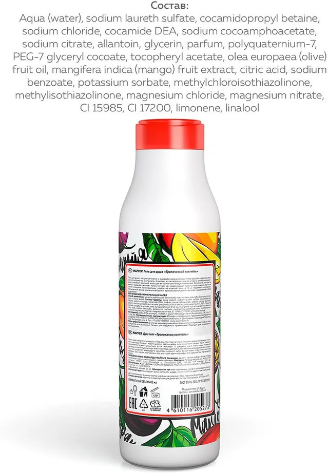 Marussia Гель для душа с экстрактом манго и маракуйи «Тропический коктейль»