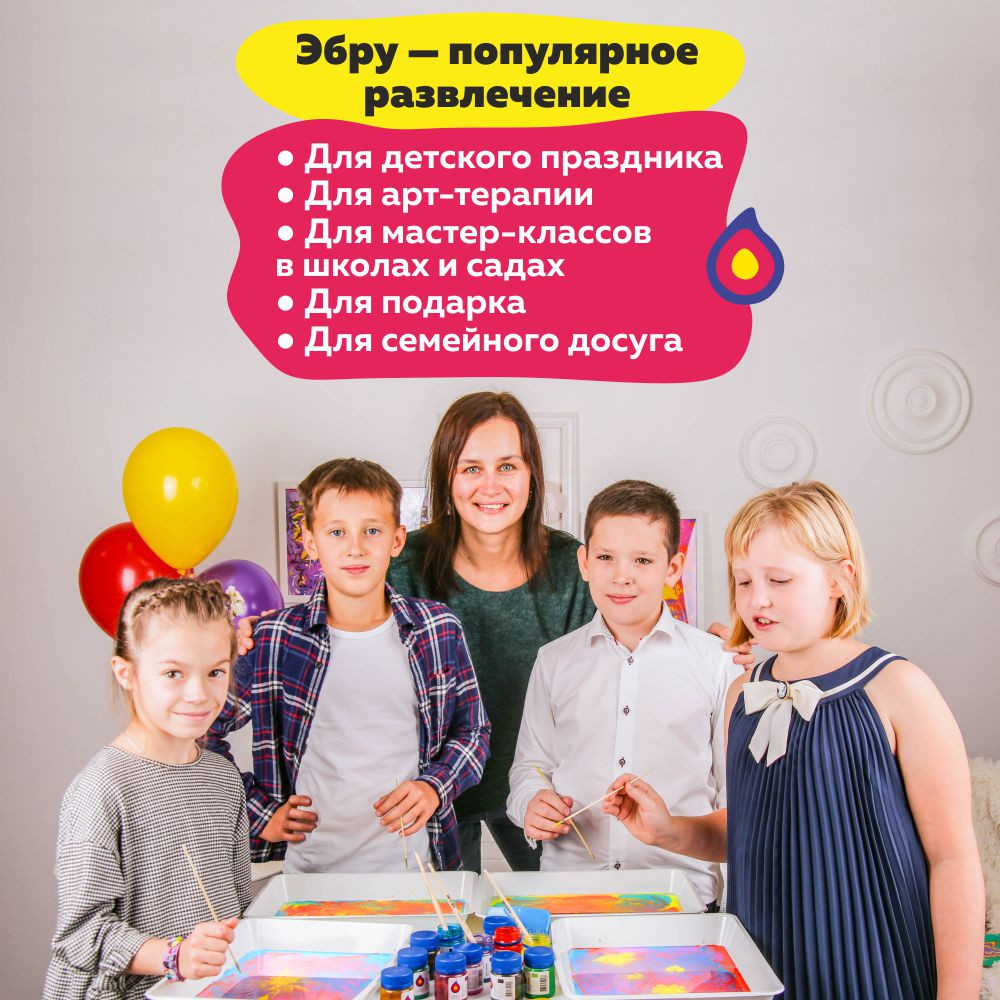 В данный момент этот товар отсутствует в продаже. Возможно, у нас найдется аналогичный или похожий товар здесь. Эбру — древняя восточная техника рисования, работать в которой раньше имели возможность немногие, теперь стала доступна каждому. Магические узоры, которые у вас получатся, поразит своей уникальностью, а сам процесс творчества заворожит — вы почувствуете необычность этого таинства. Как по волшебству в лотке, а потом и на бумаге оживут ваши креативные задумки. Нужно только капнуть в специальный раствор краской и воспользоваться палочками, кисточками и гребенкой для получения желаемого результата.