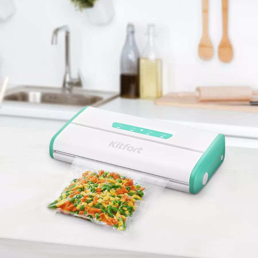 Вакууматор Kitfort КТ-1514 — современный прибор, призванный увеличить сроки хранения пищевых продуктов. Продукты, упакованные под вакуумом, сохраняют свежесть и не портятся существенно дольше по сравнению с обычными условиями хранения.