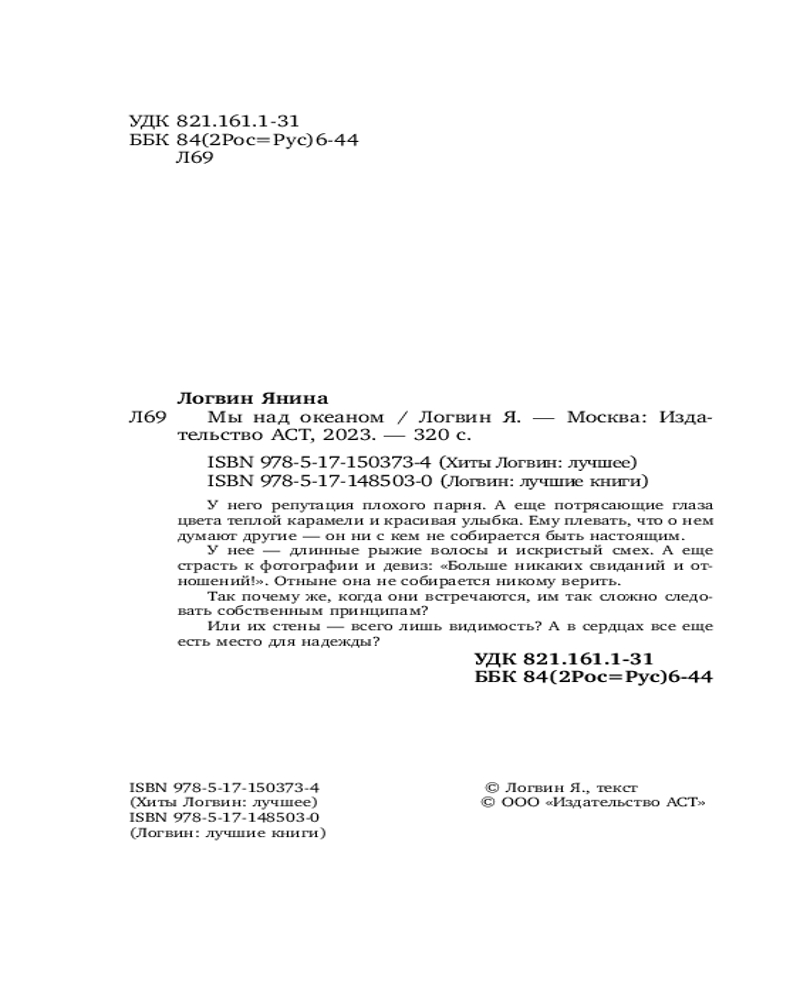 💳 Оплатить за товар можно при получении 🇰🇿 Есть бесплатная доставка по Казахстану от 1 дня 🎁 Копите бонусы с каждой покупки Серия: Хиты Логвин: лучшее У него репутация плохого парня. А еще потрясающие глаза цвета теплой карамели и красивая улыбка. Ему плевать, что о нем думают другие — он ни с кем не собирается быть настоящим. |