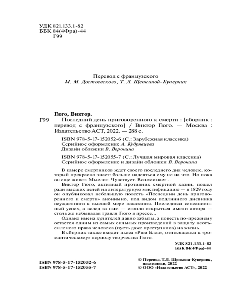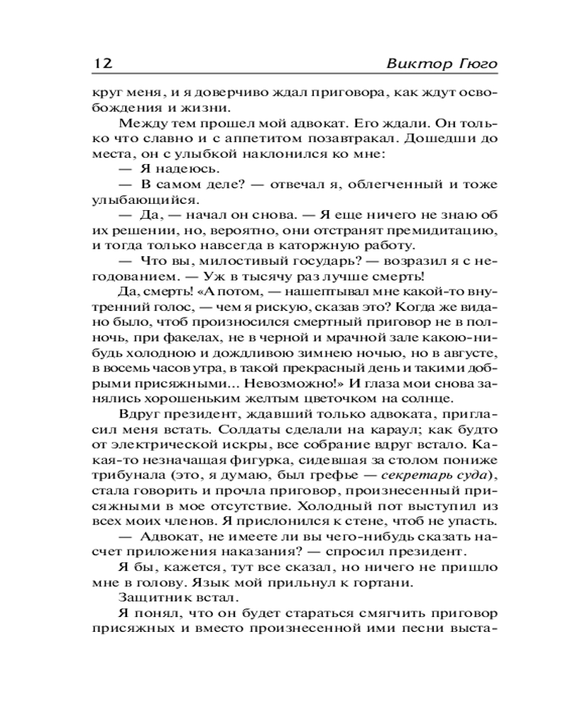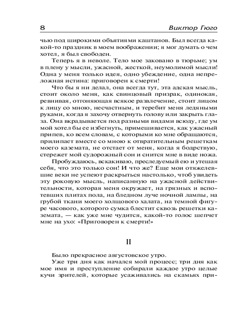 💳 Оплатить за товар можно при получении 🇰🇿 Есть бесплатная доставка по Казахстану от 1 дня 🎁 Копите бонусы с каждой покупки Серия: Лучшая мировая классика В камере смертников ждет своего последнего дня человек, который прекрасно знает: больше надеяться ему не на что. Но пока он еще живет. Мыслит. Чувствует. Вспоминает... |
