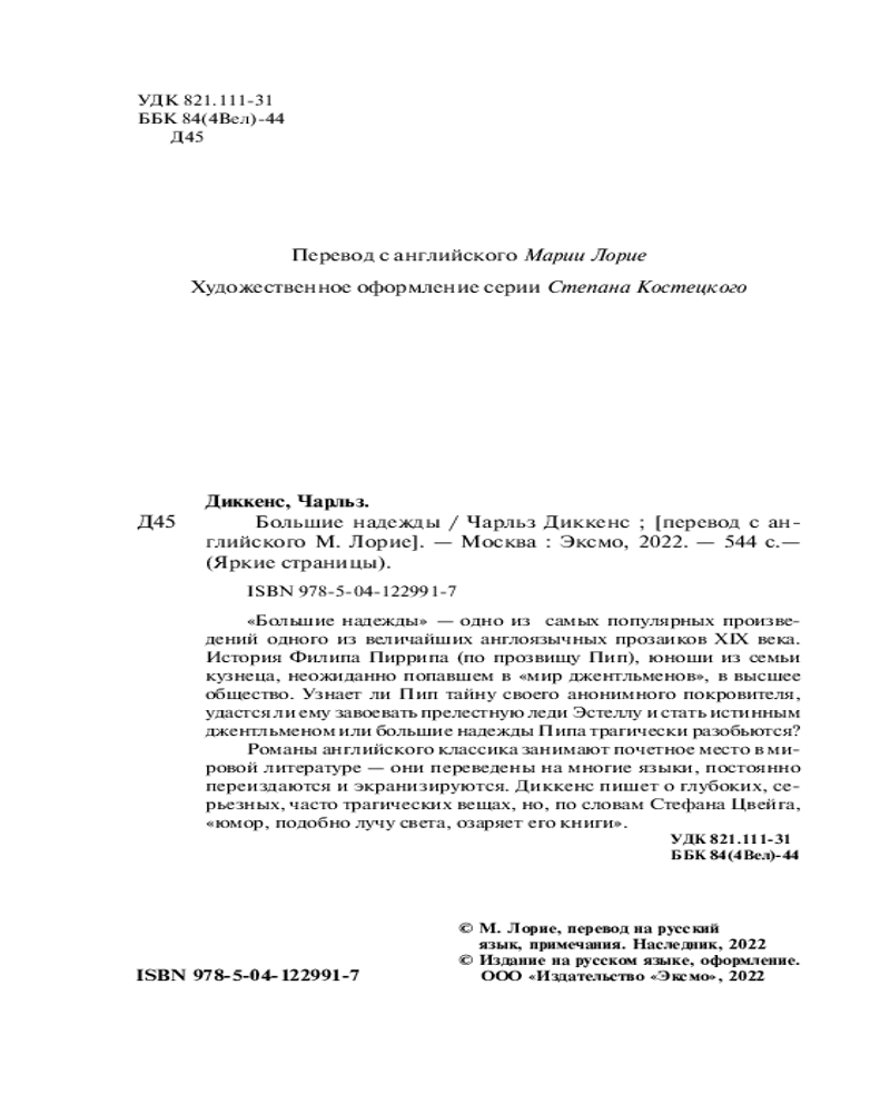 💳 Оплатить за товар можно при получении 🇰🇿 Есть бесплатная доставка по Казахстану от 1 дня 🎁 Копите бонусы с каждой покупки Серия: Яркие страницы «Большие надежды» — одно из самых популярных произведений одного из величайших англоязычных прозаиков XIX века. История Филипа Пиррипа (по прозвищу Пип), юноши из семьи кузнеца, неожиданно попавшем в «мир джентльменов», в высшее общество. Узнает ли Пип тайну своего анонимного покровителя, удастся ли ему завоевать прелестную леди Эстеллу и стать истинным джентльменом или большие надежды Пипа трагически разобьются? |