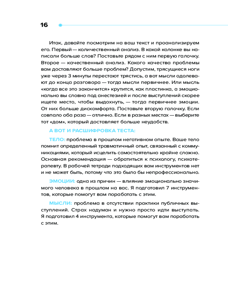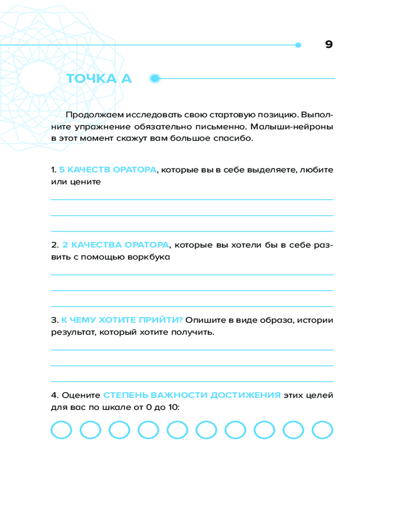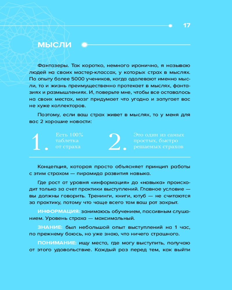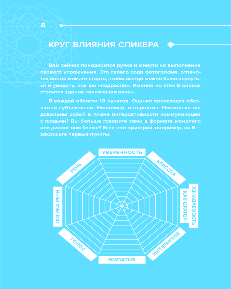 научила читать и мне не интересно стало, это не книга для чтения, скорее как рабочая тетрадь для тренировок. но это только для тех кто конкретно готовится для какого-то выступления, я хотела для общего расширения и улучшения коммуникаций.