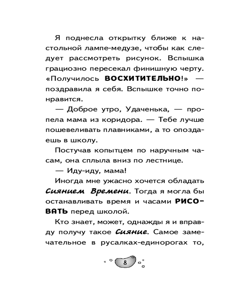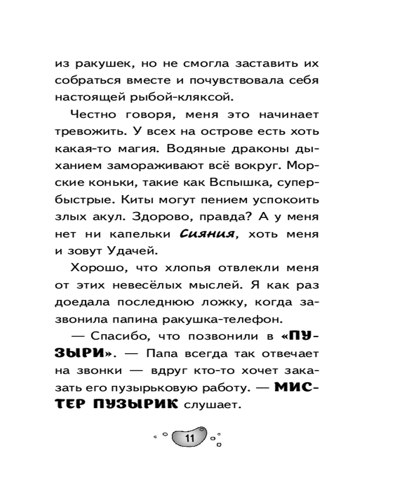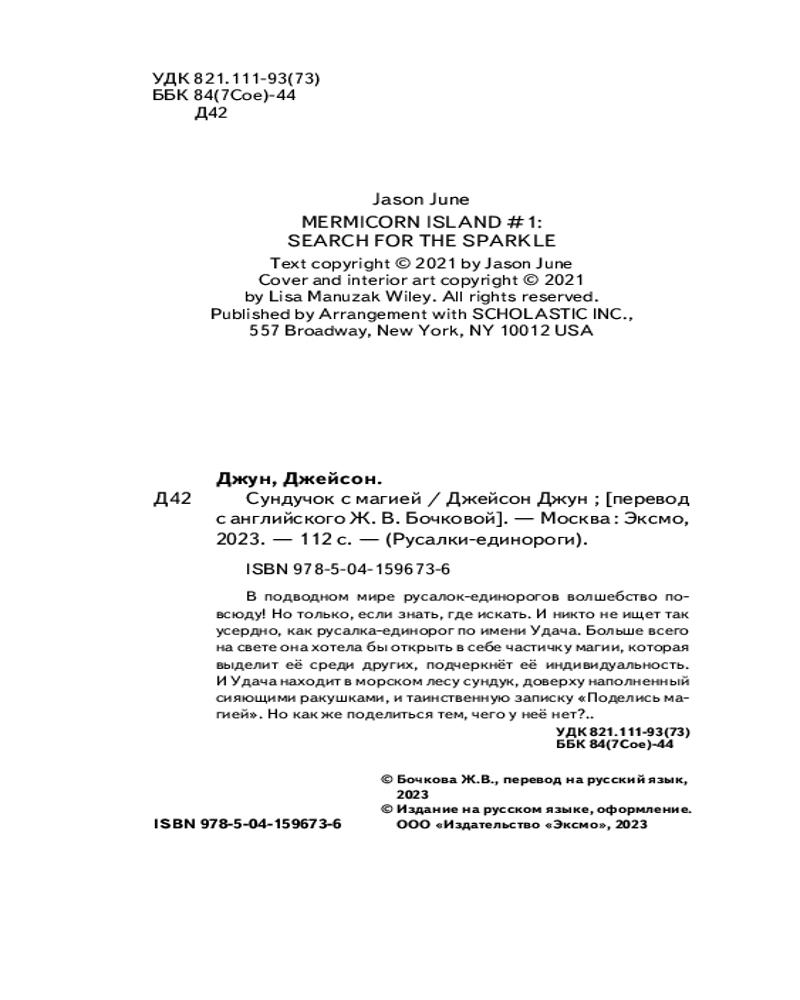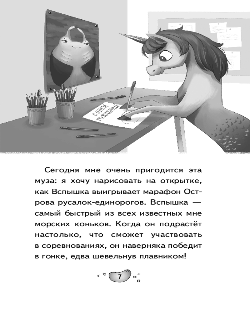 Серия: Детск. Русалки-единороги В подводном мире русалок-единорогов волшебство повсюду! Но только, если знать, где искать. И никто не ищет так усердно, как русалка-единорог по имени Удача. Больше всего на свете она хотела бы открыть в себе частичку магии, которая выделит её среди других, подчеркнёт её индивидуальность. И Удача находит в морском лесу сундук, доверху наполненный сияющими ракушками, и таинственную записку «Поделись магией». Но как же поделиться тем, чего у неё нет?.. |