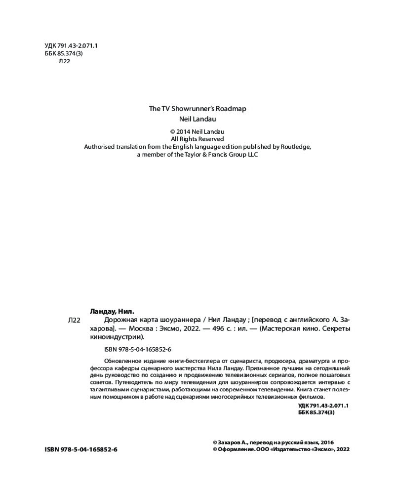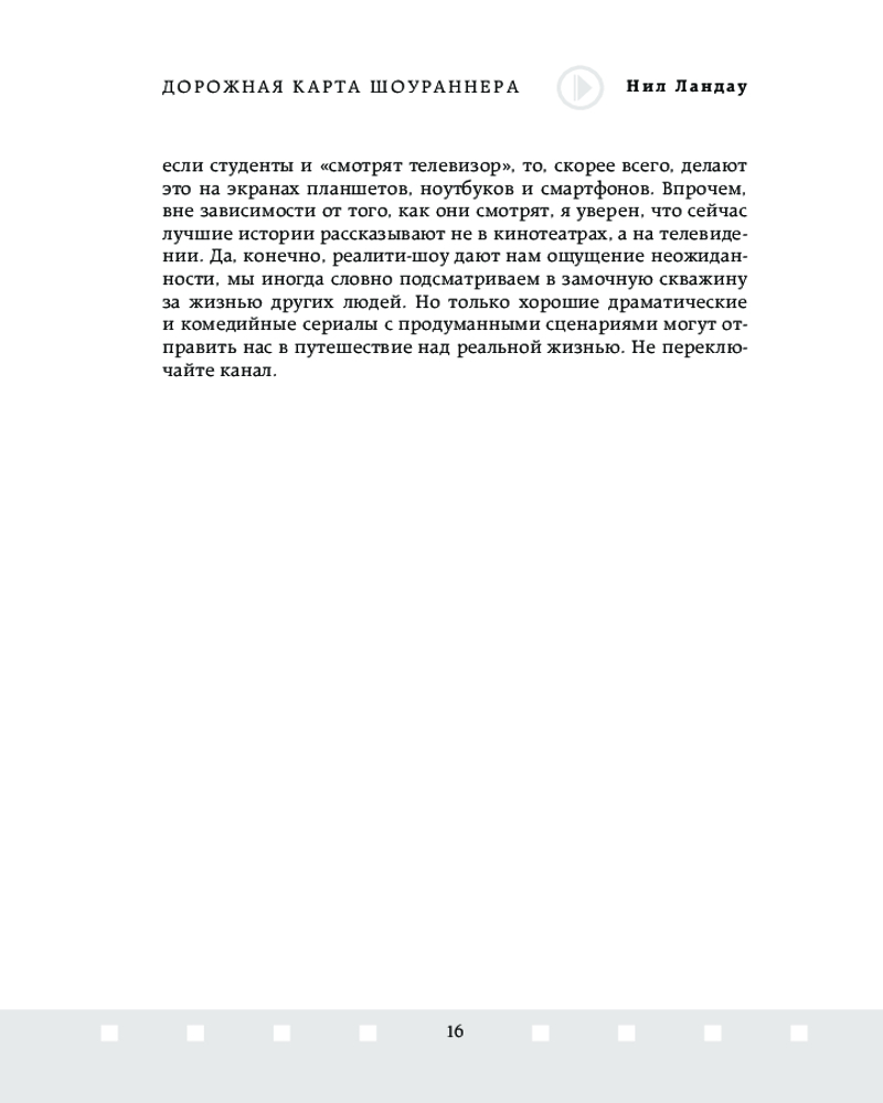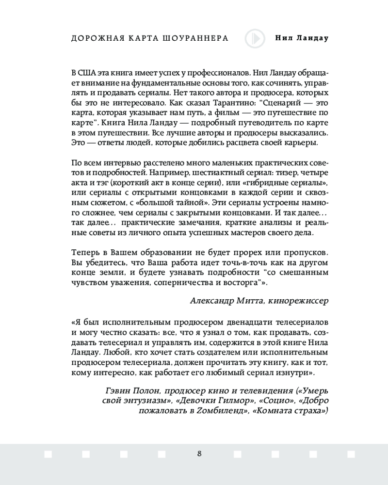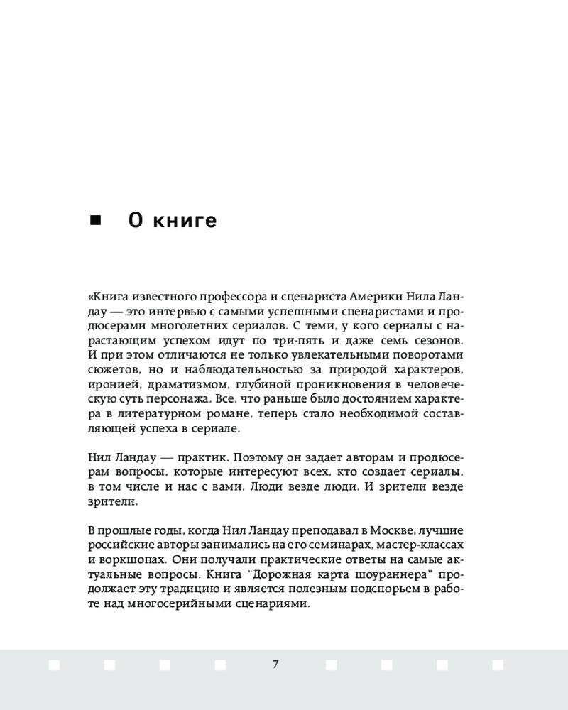💳 Оплатить за товар можно при получении 🇰🇿 Есть бесплатная доставка по Казахстану от 1 дня 🎁 Копите бонусы с каждой покупки Серия: Мастерская кино. Секреты киноиндустрии Сериалы уже давно стали популярнее полнометражного кино! Но создать действительно качественный сериал, который продлиться ни один сезон как, например, «Ходячие мертвецы» — та еще задачка! |