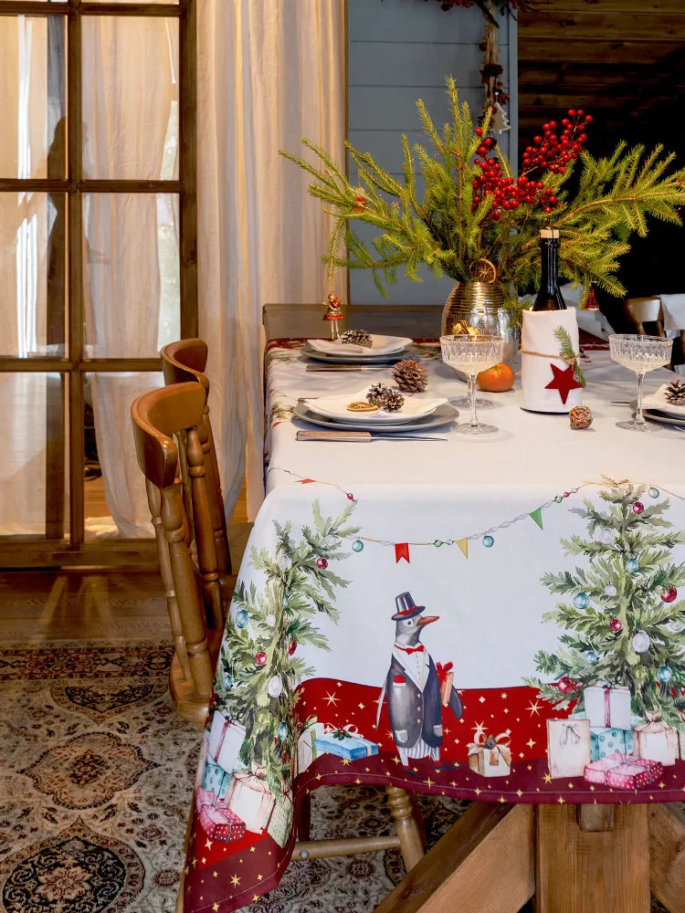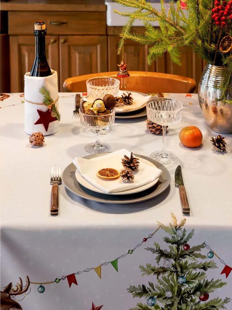 Тонкая, хрустящая синтетика. Посмотрим после стирки. Если стол темного дерева, то просвечивает и скатерть уже не белая . Купила по скидке. Но за цену которая сейчас указана не рекомендую