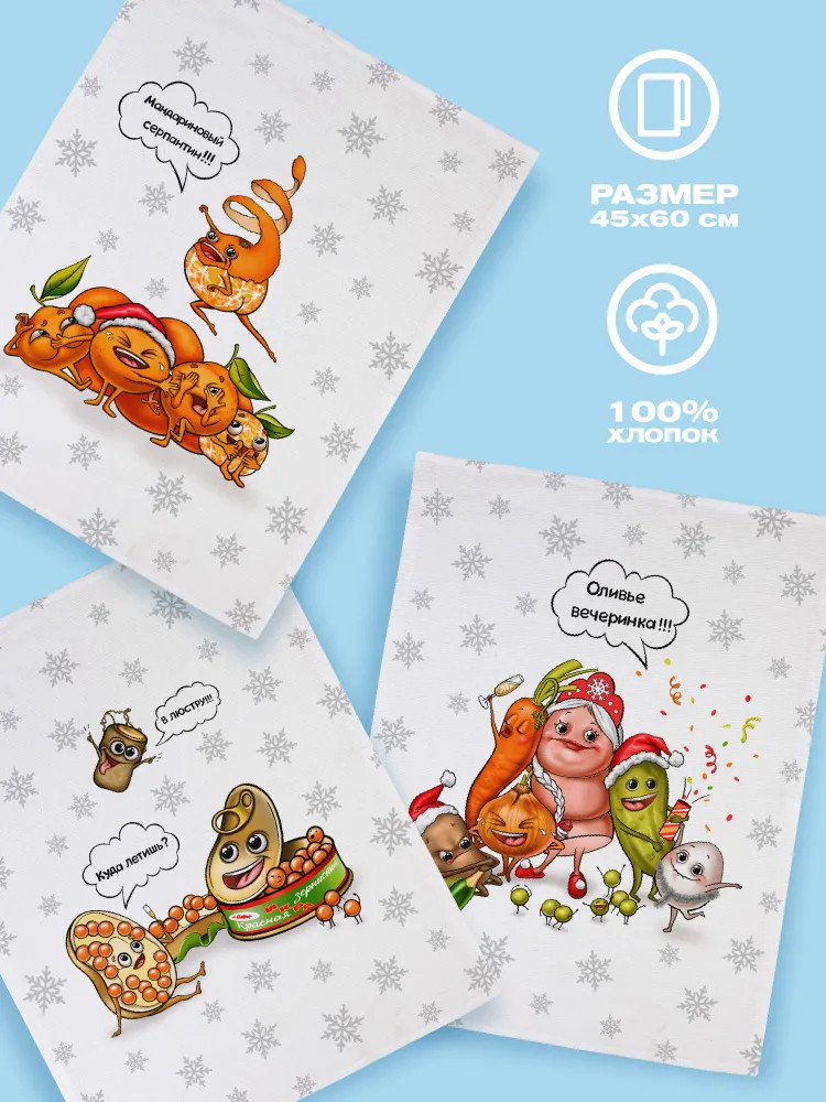 Crazy Getup Комплект полотенец вафельныхВ данный момент этот товар отсутствует в продаже. Возможно, у нас найдется аналогичный или похожий товар здесь. Серия: Olivier team Комплект из пяти вафельных полотенец из серии «Olivier team». Интересный принт — не как у всех! Полотенца выполнены из плотного, износостойкого вафельного полотна. Изготовлены из натурального хлопка, а за счет своей вафельной фактуры хорошо впитывают влагу и быстро высыхают. |