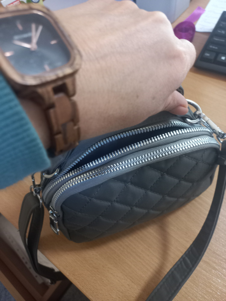 Оказалась очень маленькая, мне надо побольше. Поэтому я отказалась. К качеству нет претензий, хорошая сумочка.
