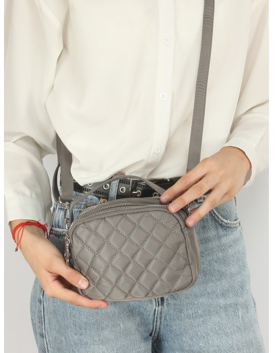 Качество хорошее, вместился телефон, картхолдер, немного косметики. Удобно брать в дорогу.Кошелек не вместился, пришлось наличку класть в боковое отделение. Удобный, качественный и длинный текстильный ремень. Хорошая фурнитура.