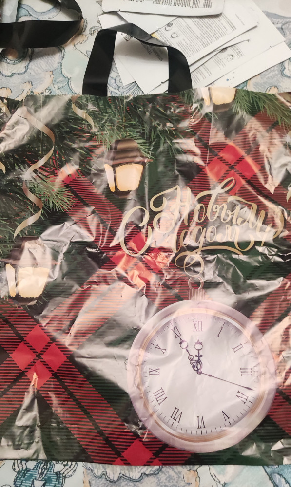Пакет тонкий, расцветка яркая, красивая, брали для подарков на НГ