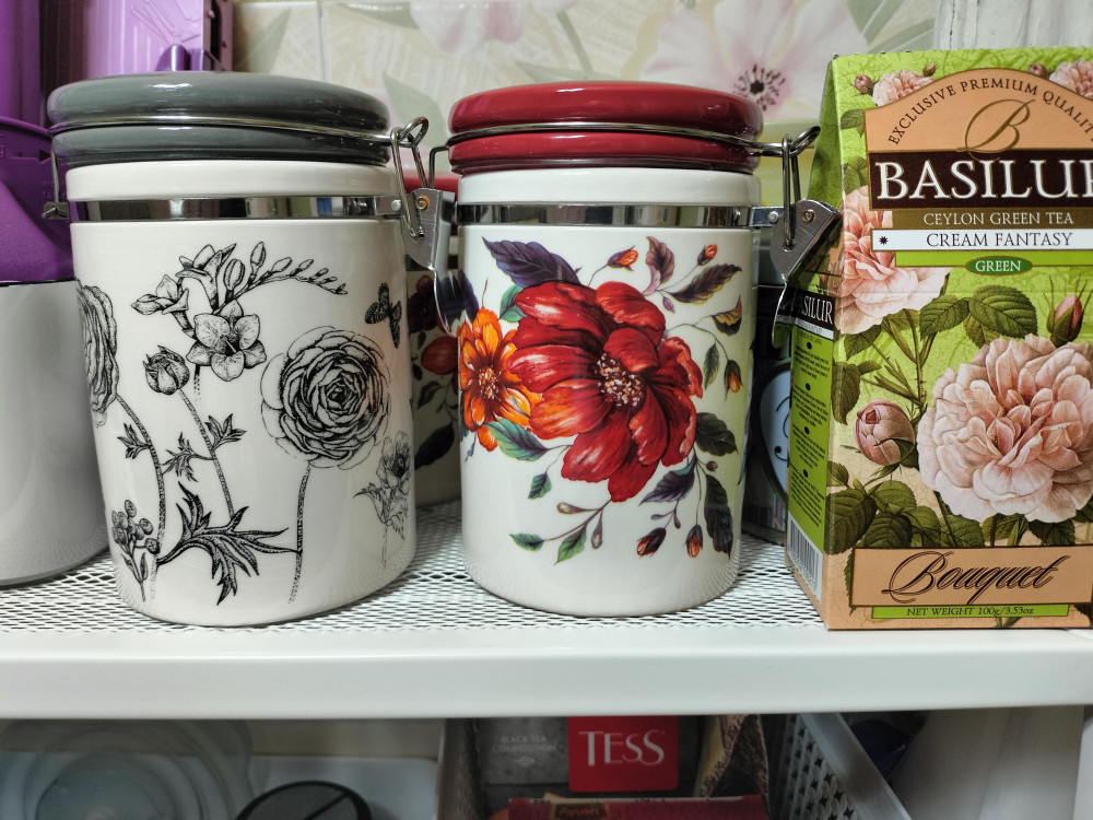 Банок много на кухне не бывает. Использую под чай. Крышка плотно закрывается, поэтому качественное хранение чая обеспечено. Дизайн красивый. Глаз радует.
